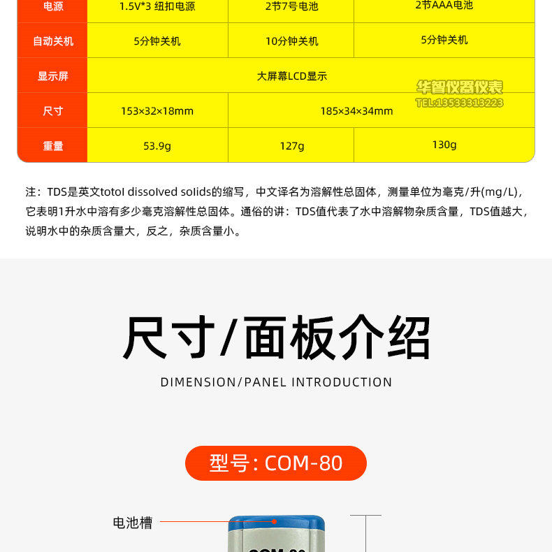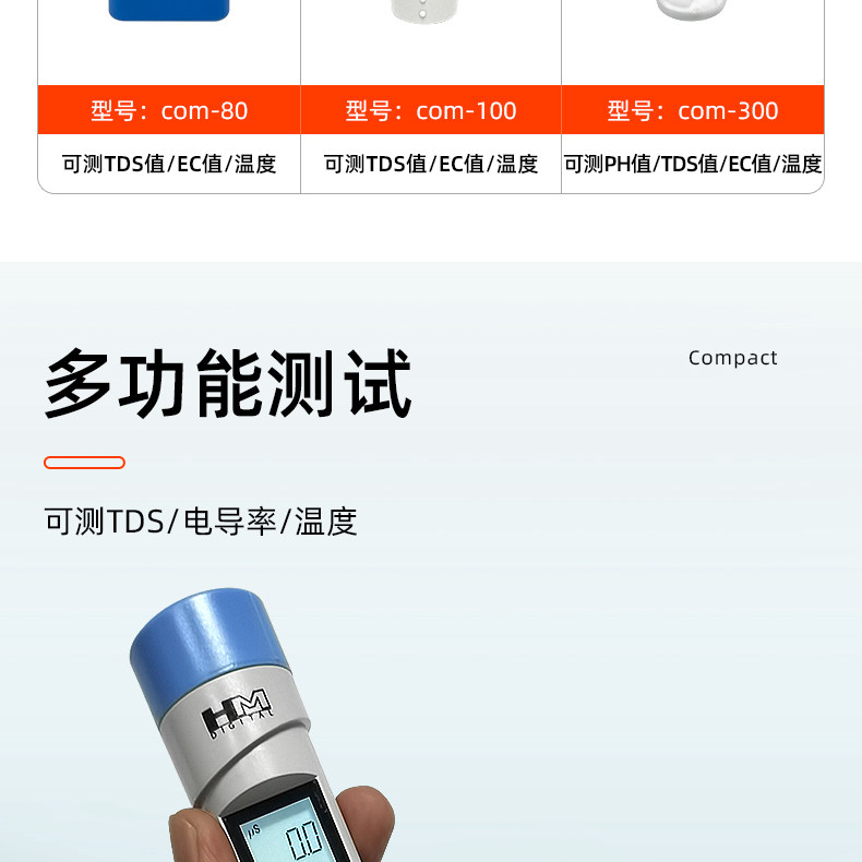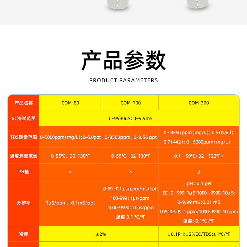 Color Classification Com80 (Ec/Tds/Temperature) Three-In-One,Com100 (Ec/Tds/Temperature) Replaceable Electrode,Com300 (Ec/Tds/Ph/Temperature) Four-In-One,Com-100 Probe (Only Probe Is Sent,There Is No Warranty),Com-300 Probe (Only Probe Sent,There Is No Warranty)