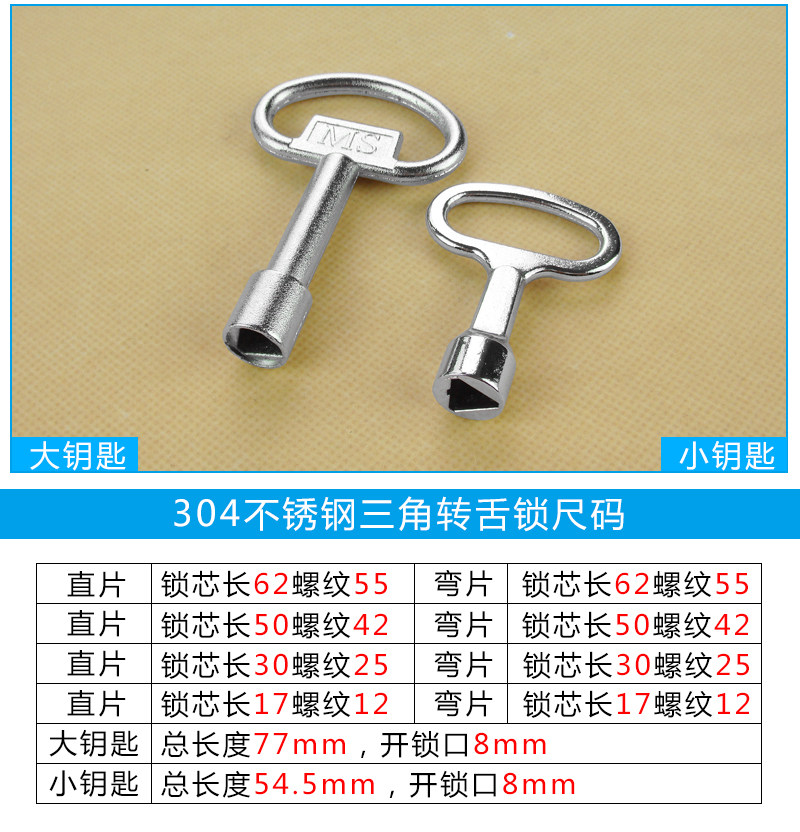 Iesco304 Stainless Steel Electrical Box Lock Distribution Box Lock Switch Cabinet Door Lock Triangle Key Turn Tongue Lock Industrial Lock