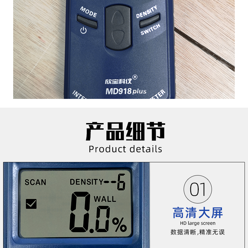 Xinbao Moisture Meter Md917/Md918 Wood Board Paper Wall Floor Tile Concrete Hygrometer
