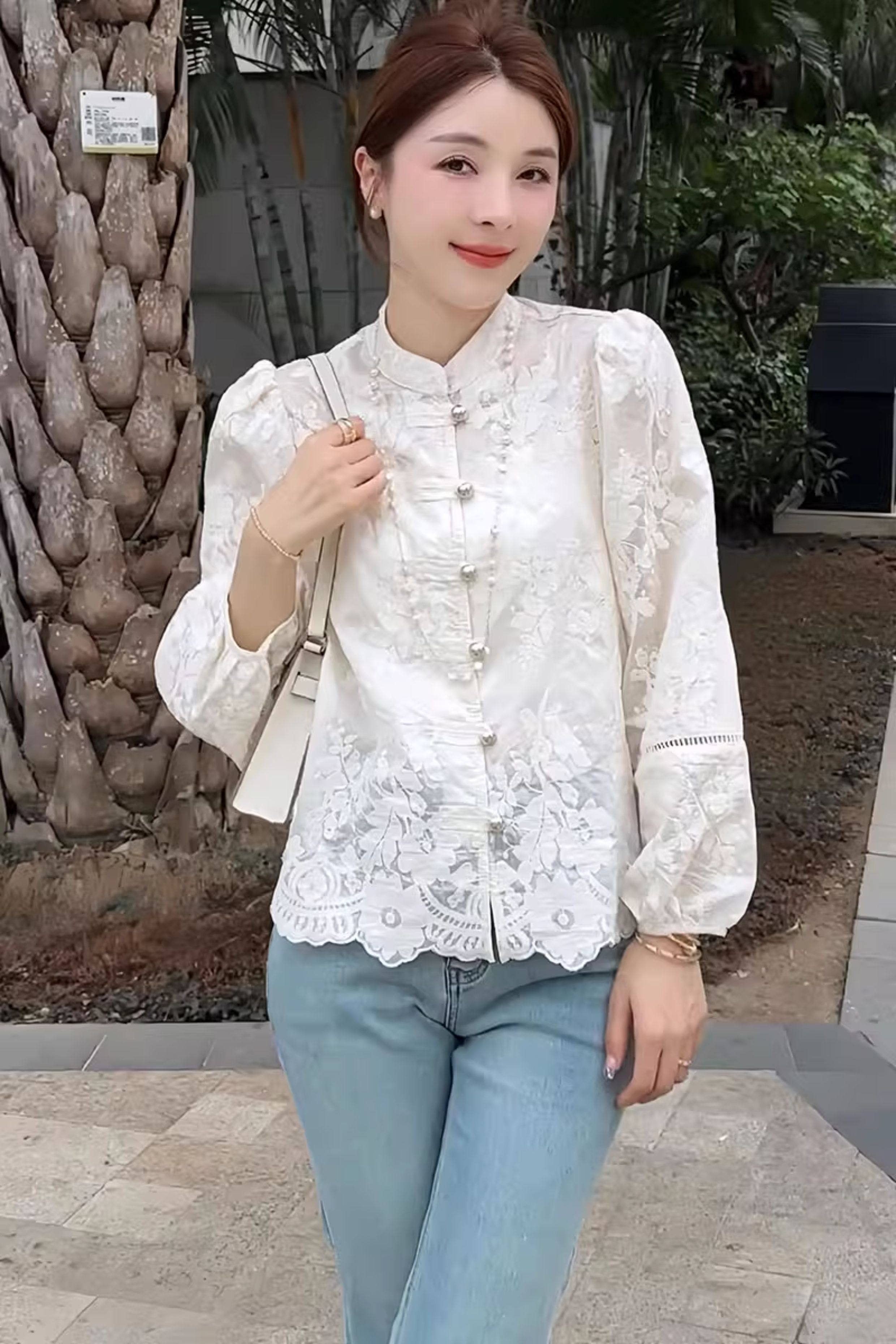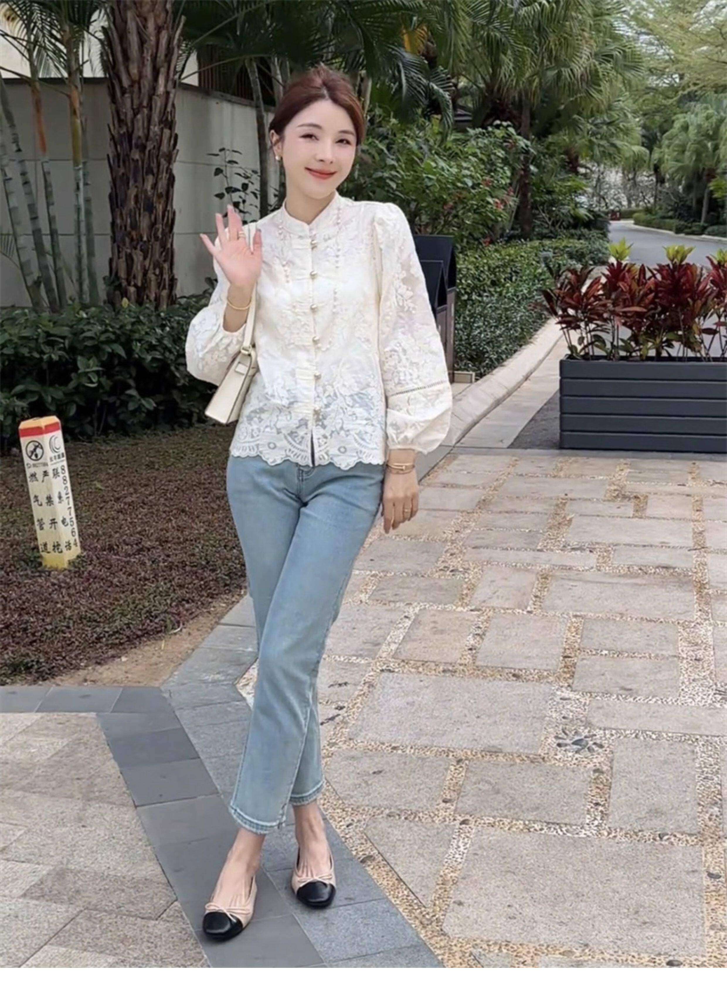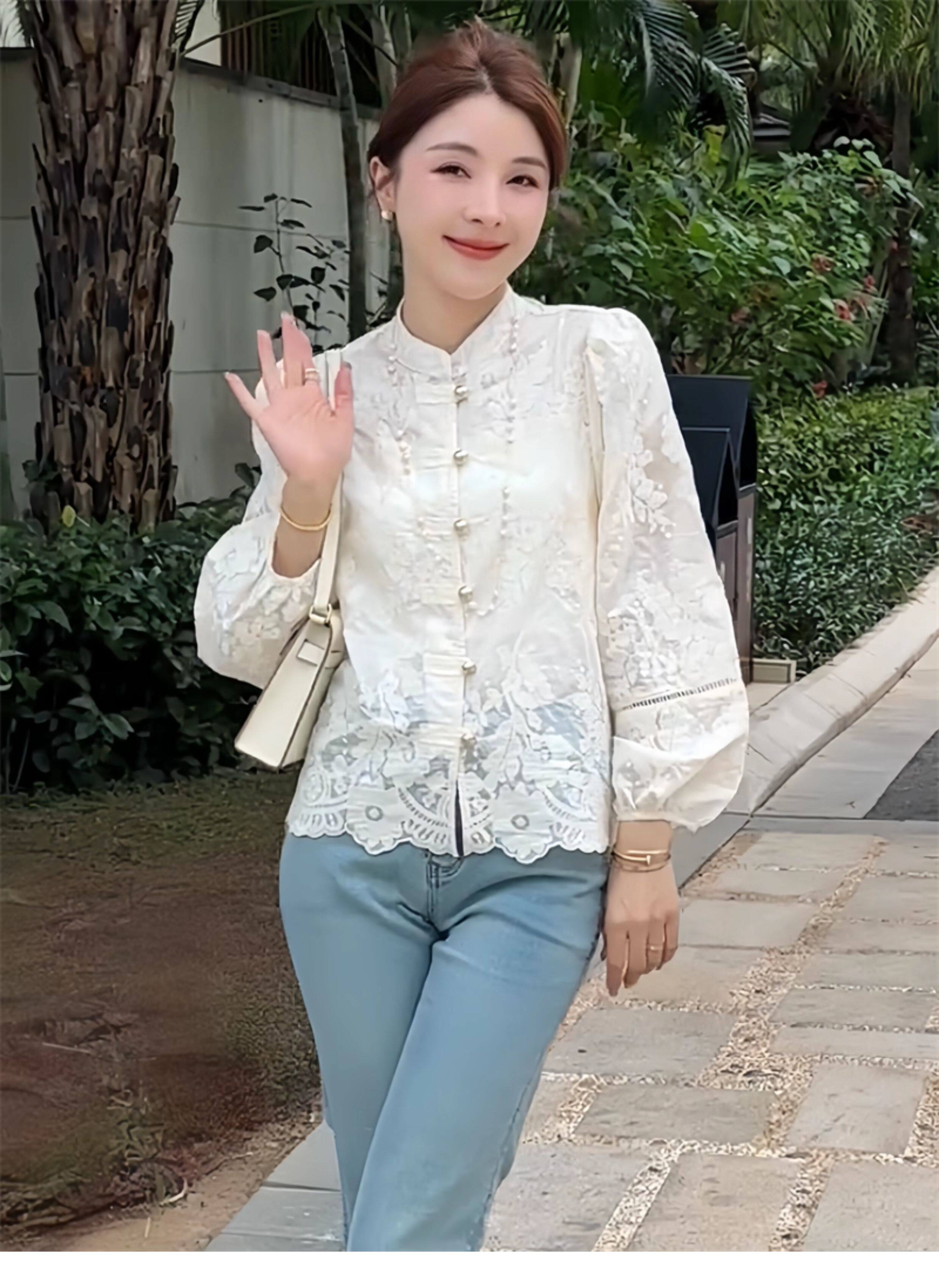 New Chinese-Style Round-Neck Lace Shirt for Women, 2026 Spring and Autumn New French-Style Elegant Versatile Slimming Base Shirt Trendy