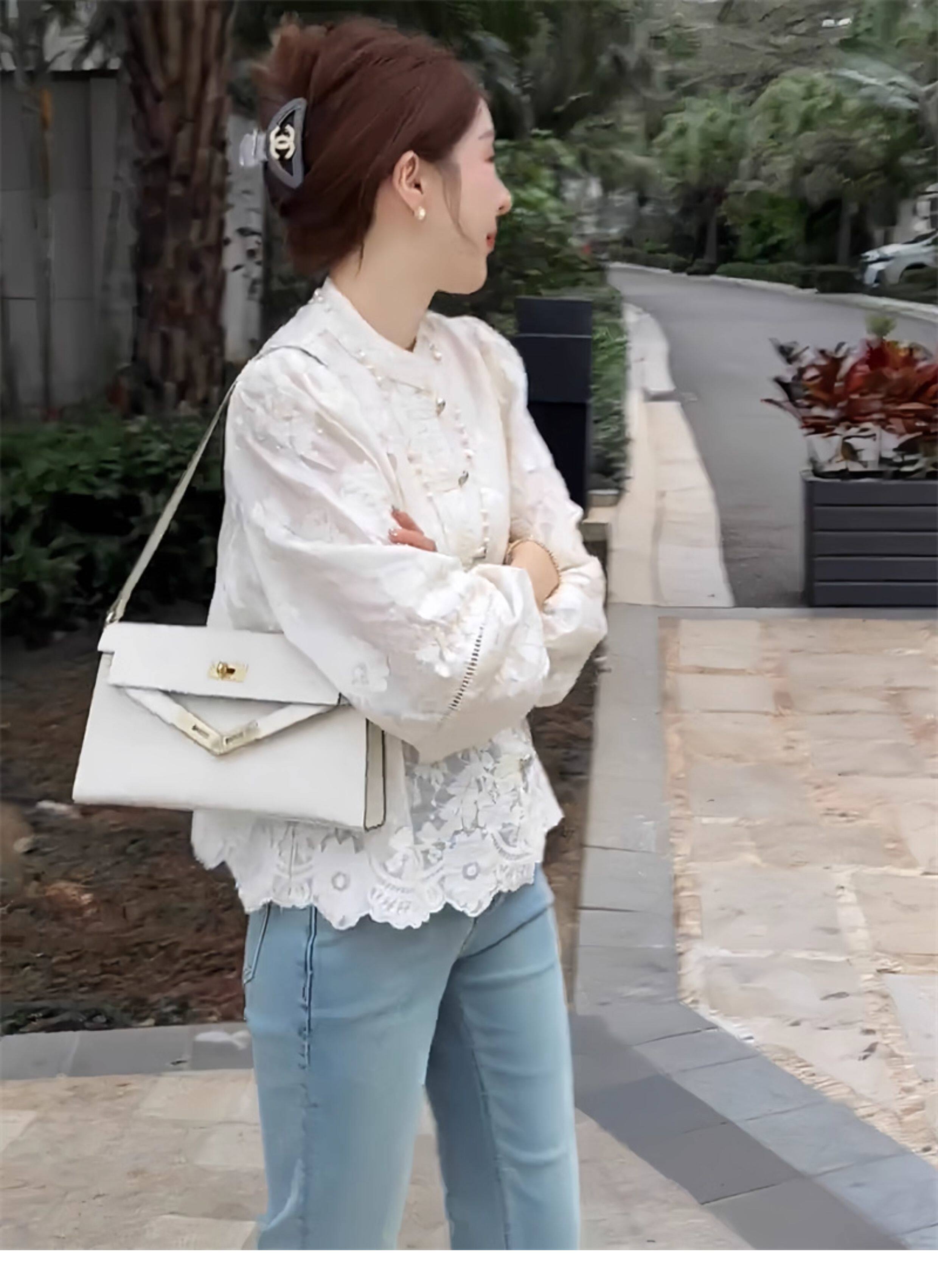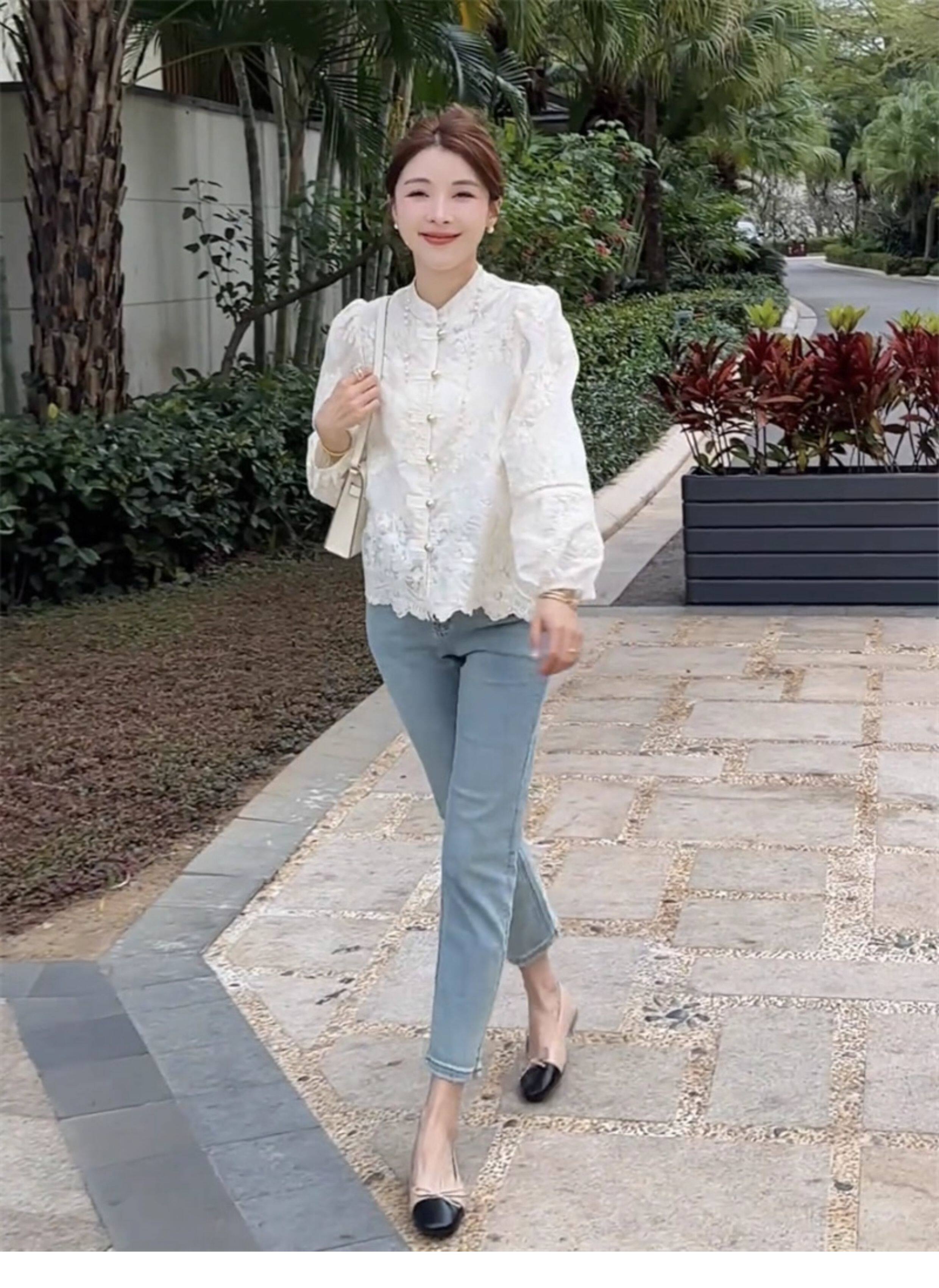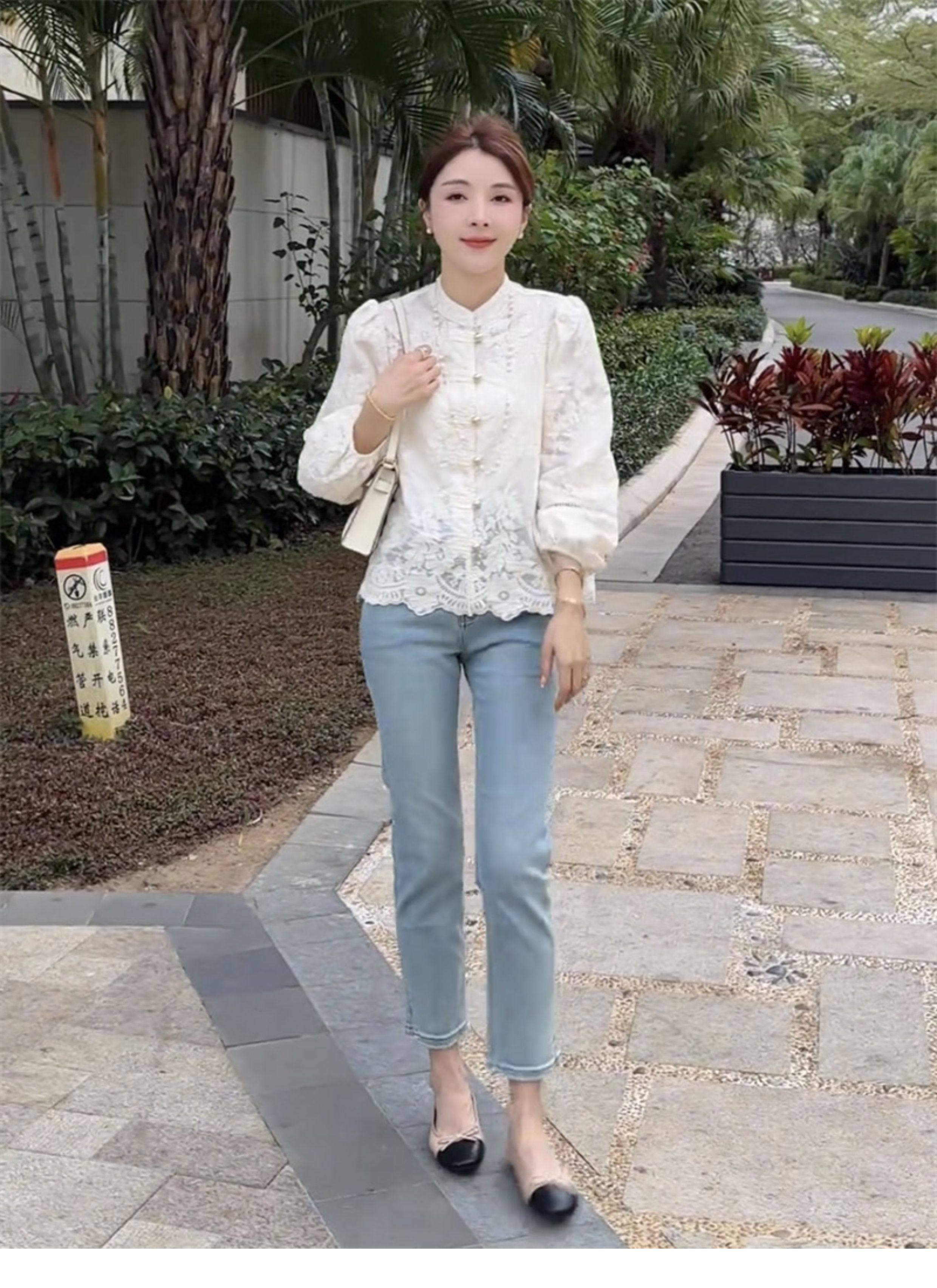 New Chinese-Style Round-Neck Lace Shirt for Women, 2026 Spring and Autumn New French-Style Elegant Versatile Slimming Base Shirt Trendy