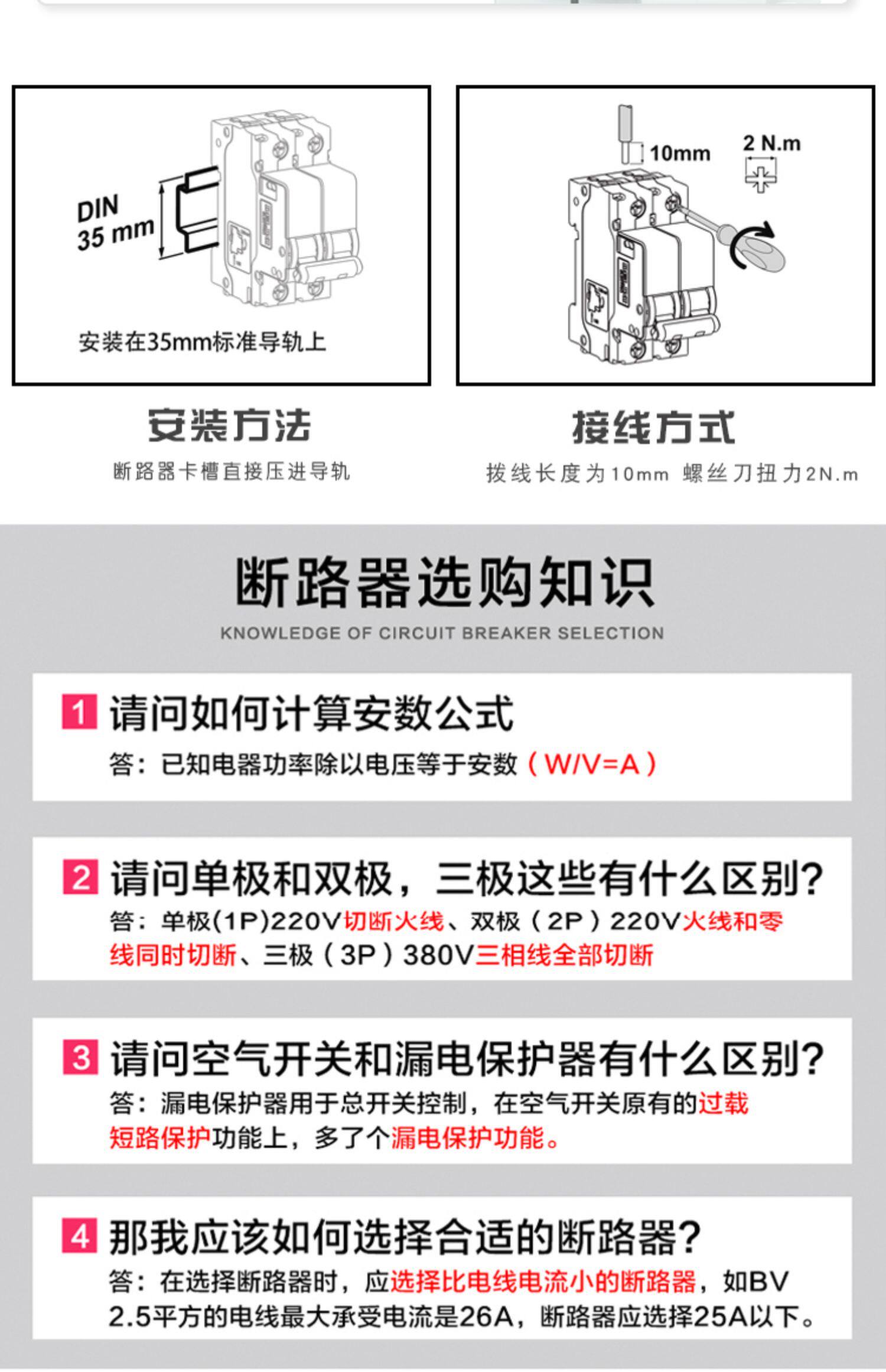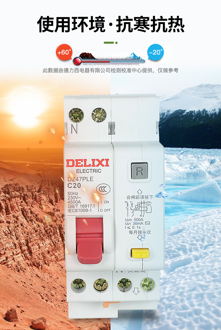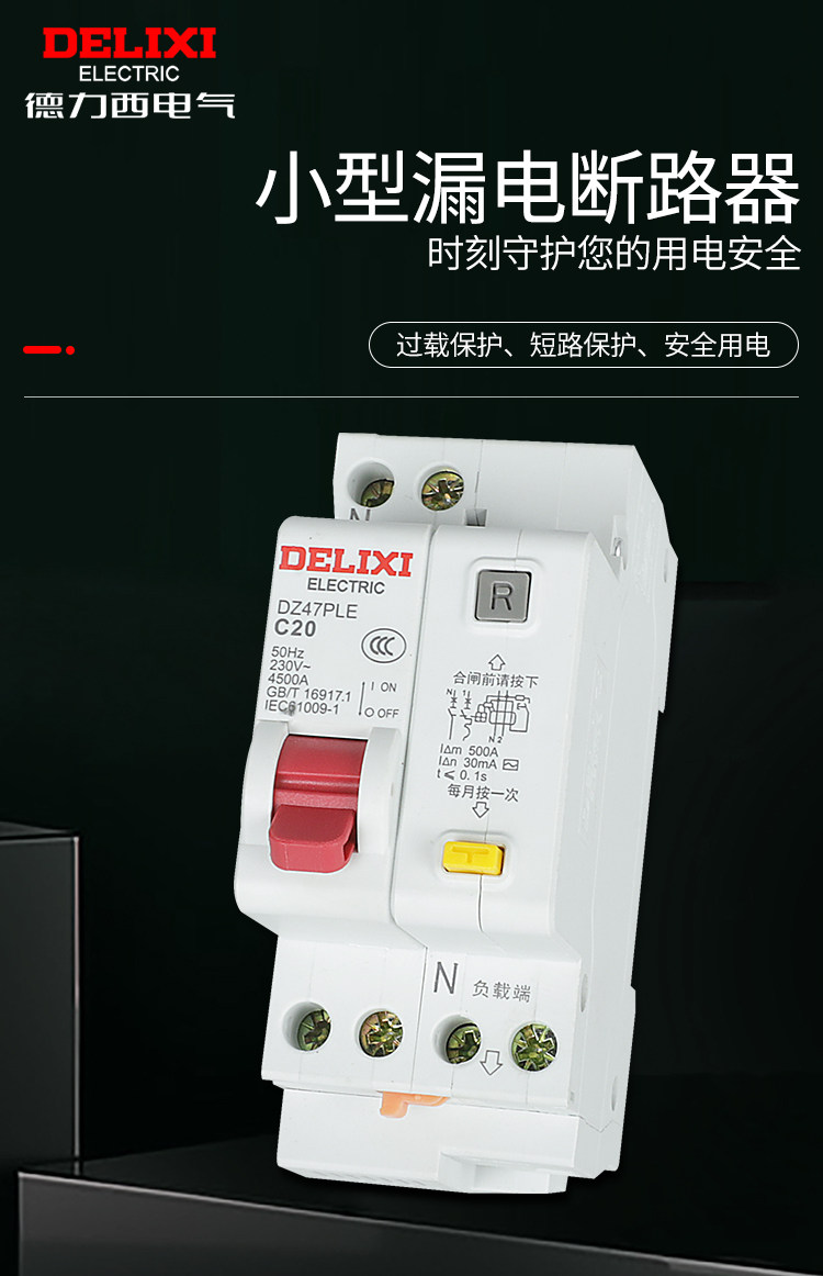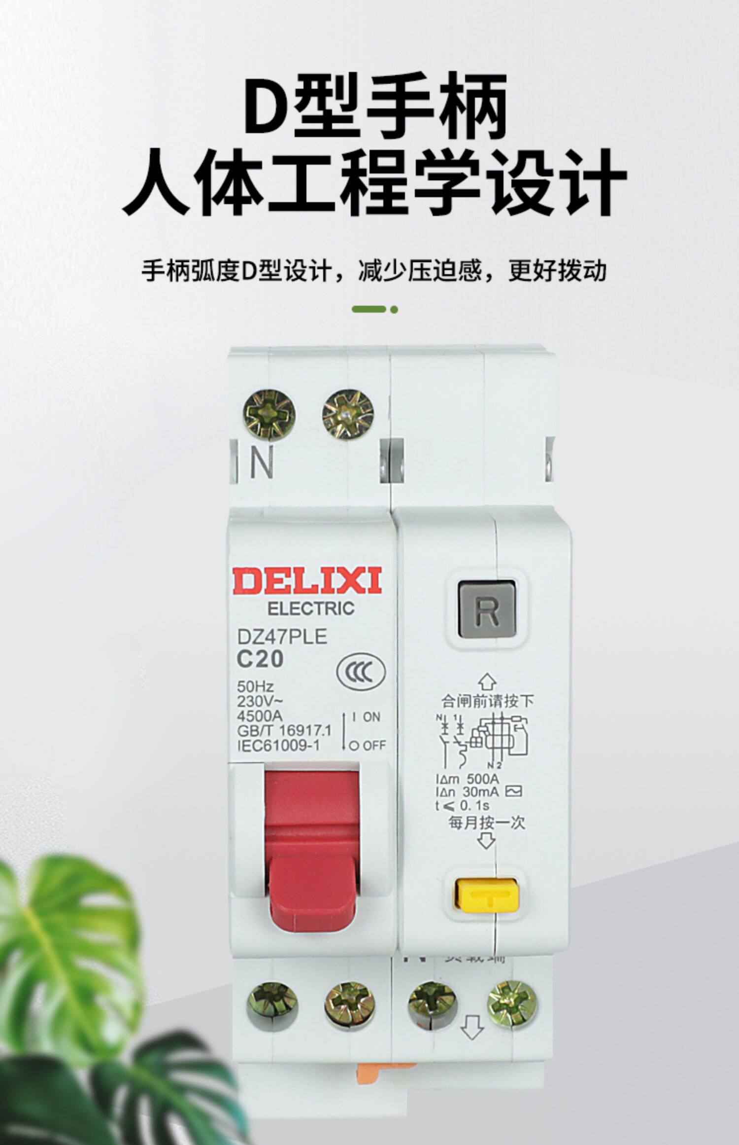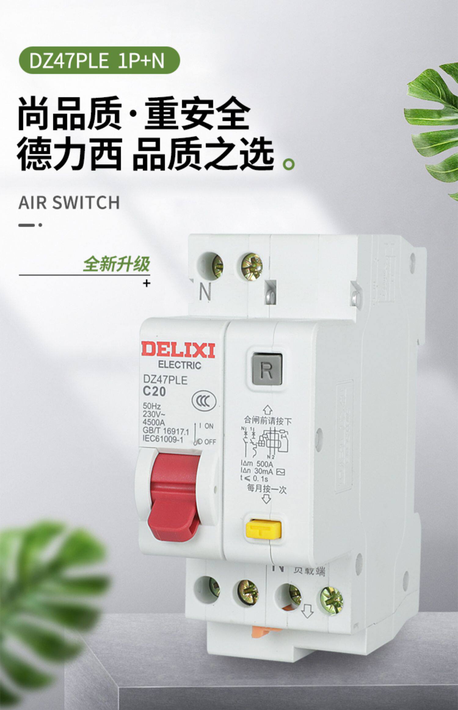 Delixi Double Inlet and Double Outlet Dz47Ple Household Leakage Protection Circuit Breaker 1P+N Air Conditioner Circuit Breaker 20A32A40A