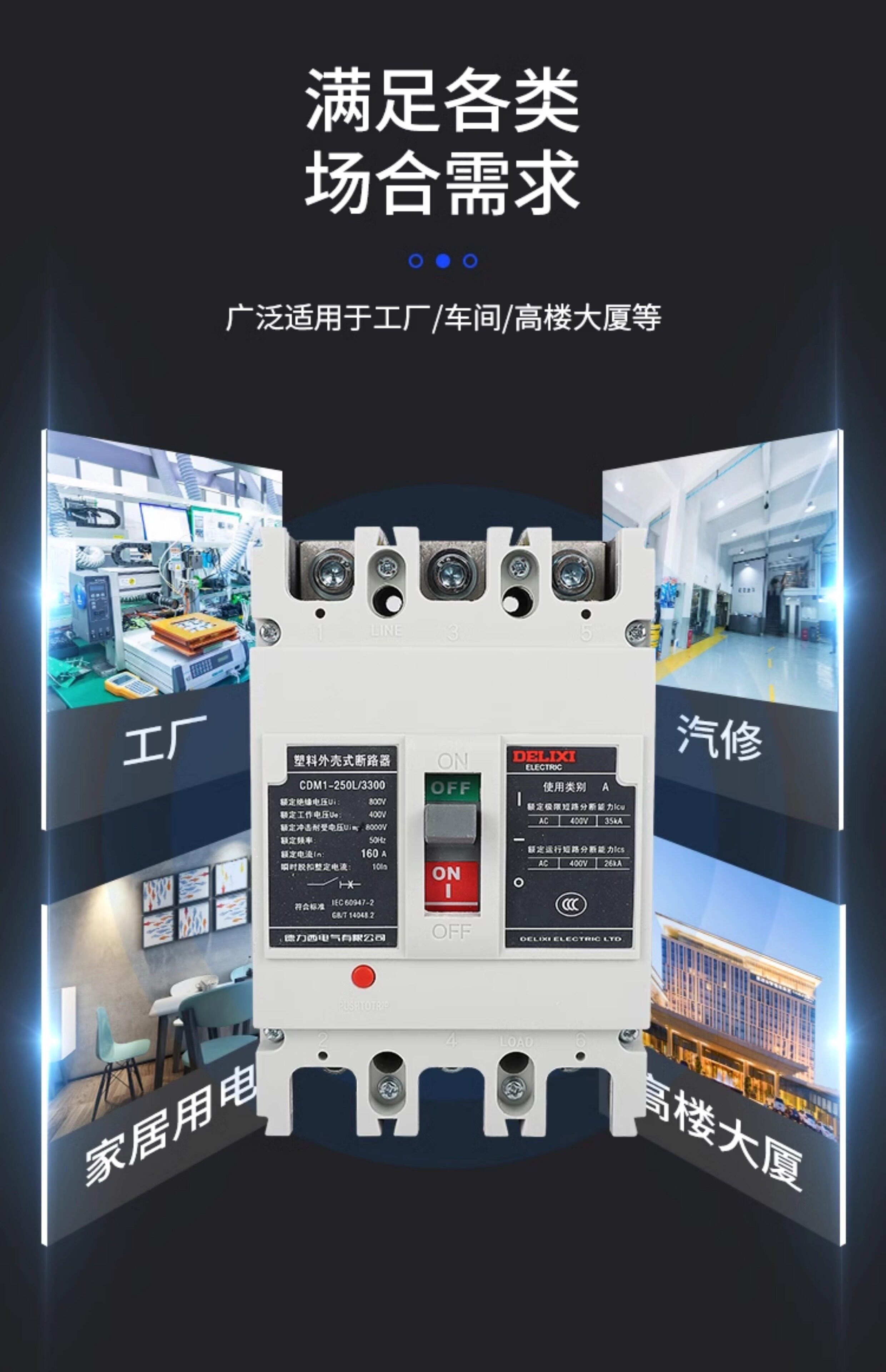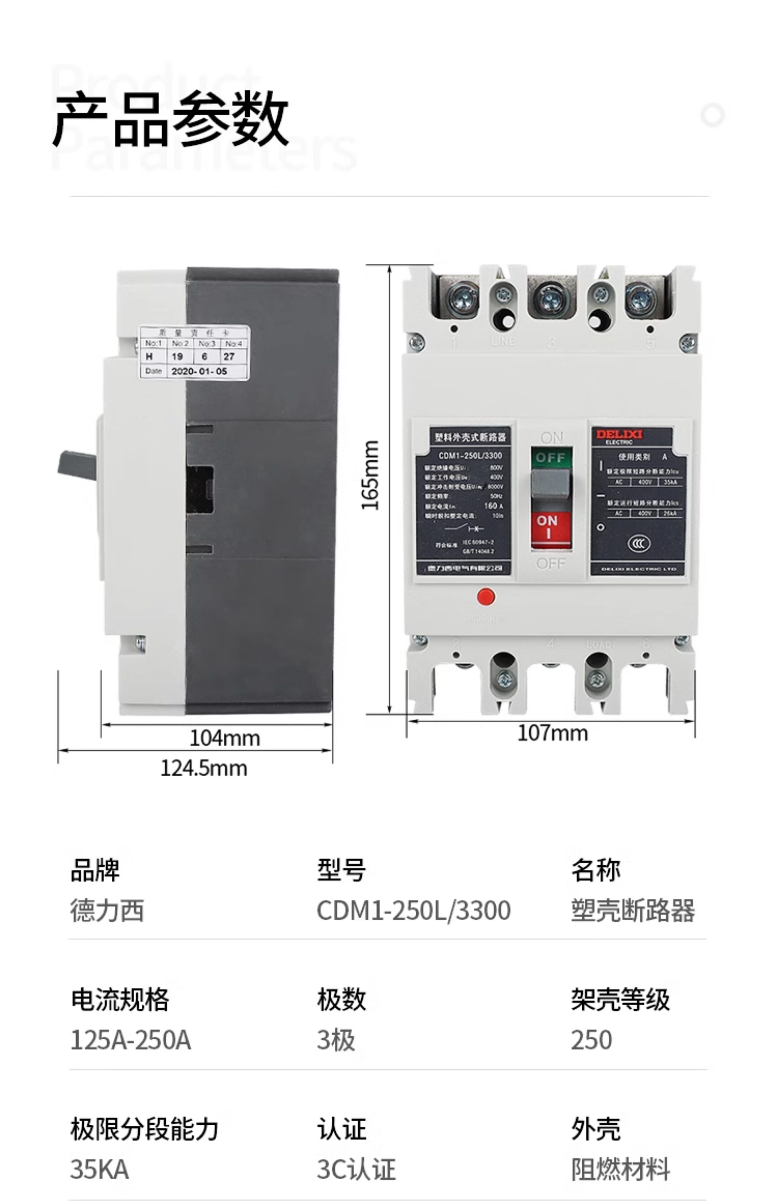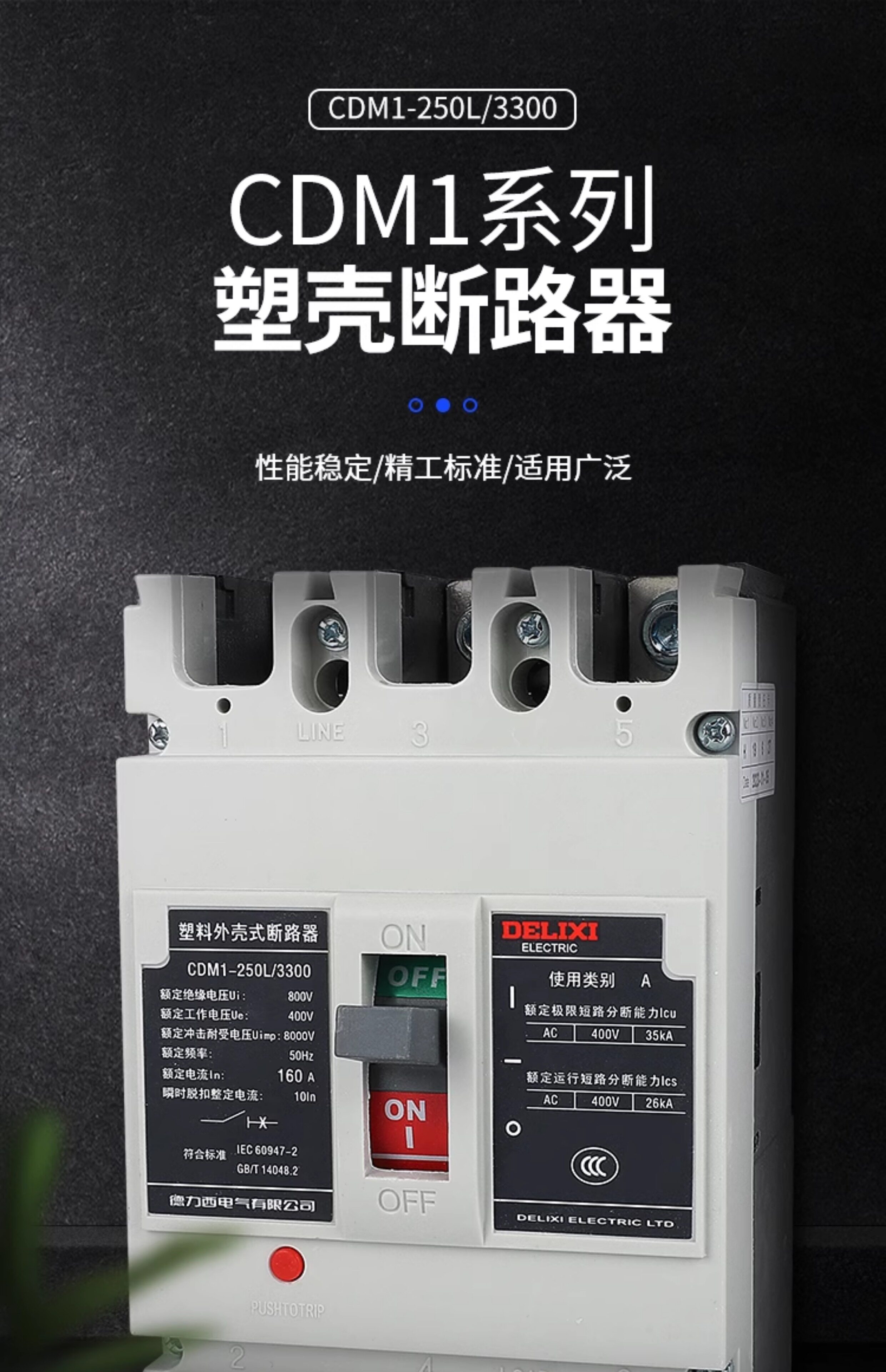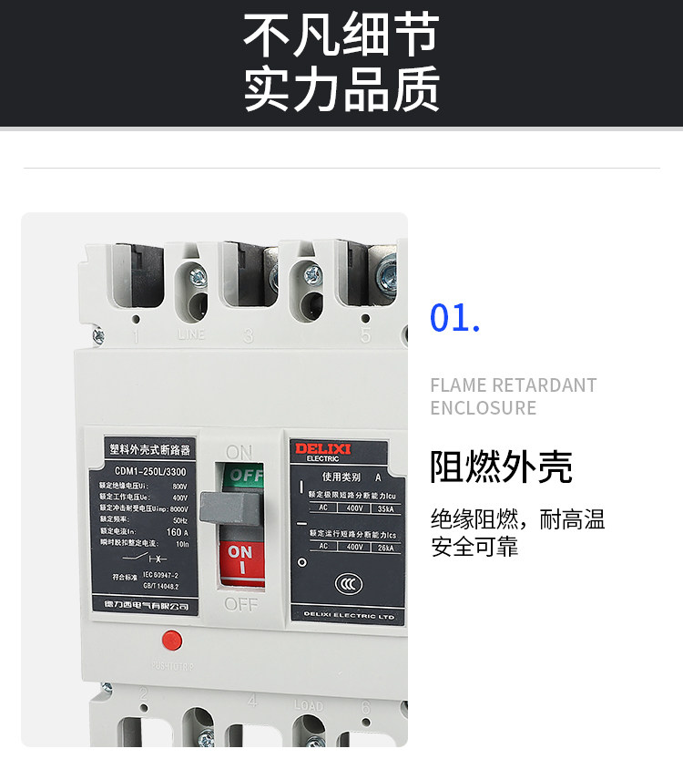 Delixi CDM1-250L plastic case circuit breaker 3300 air switch 200A125A160A225A air switch 3P
