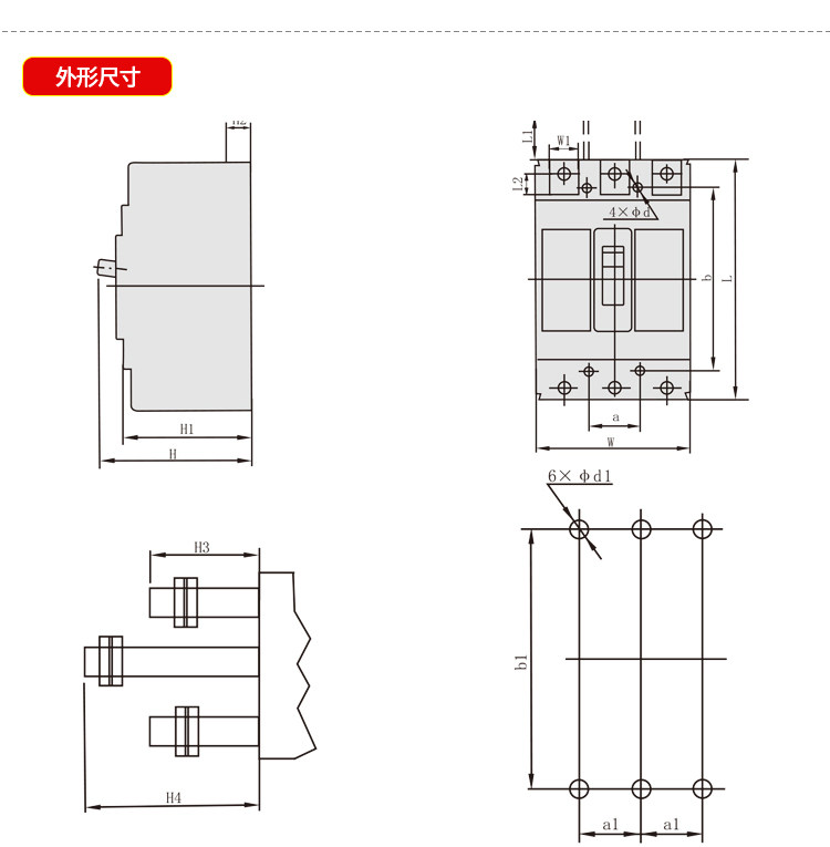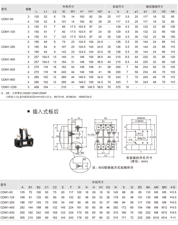 Rated current 125A,160A,200A,225A,250A
