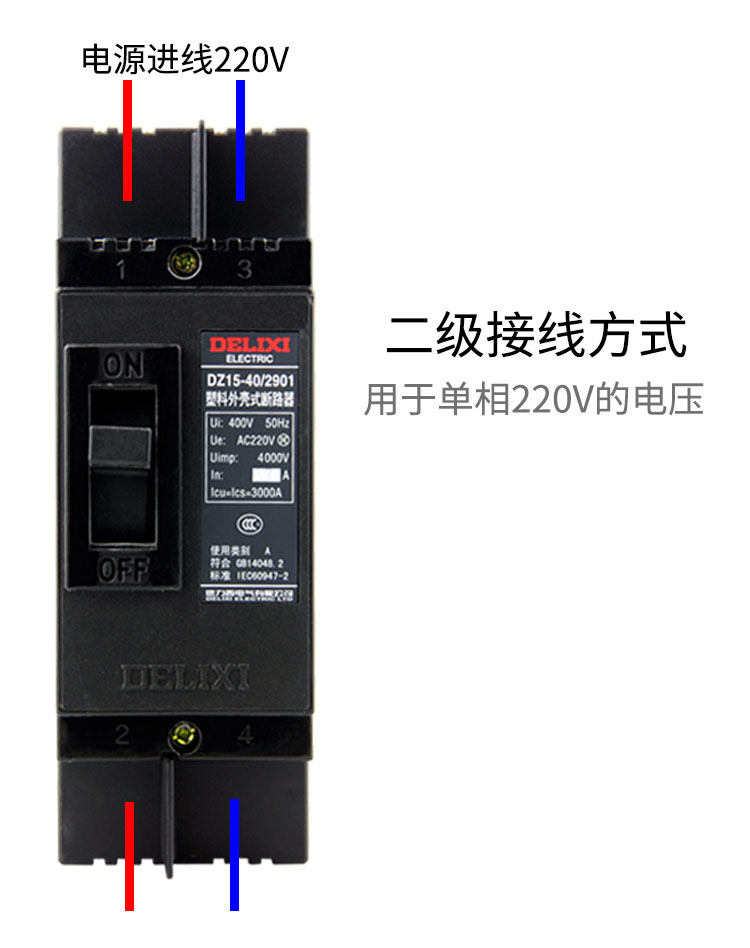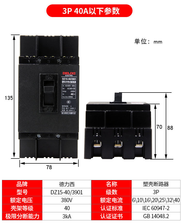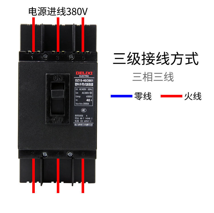 Delixi Molded Case Circuit Breaker Dz15-40/3901 16A-40A Air Switch Black Molded Case Power Type