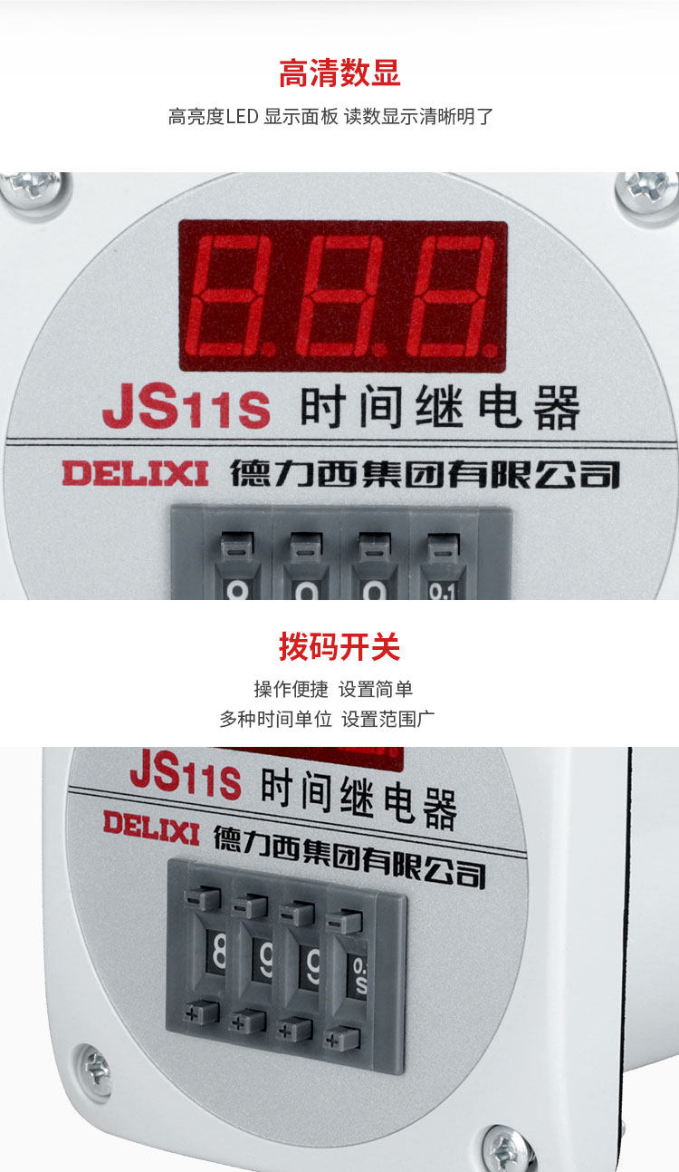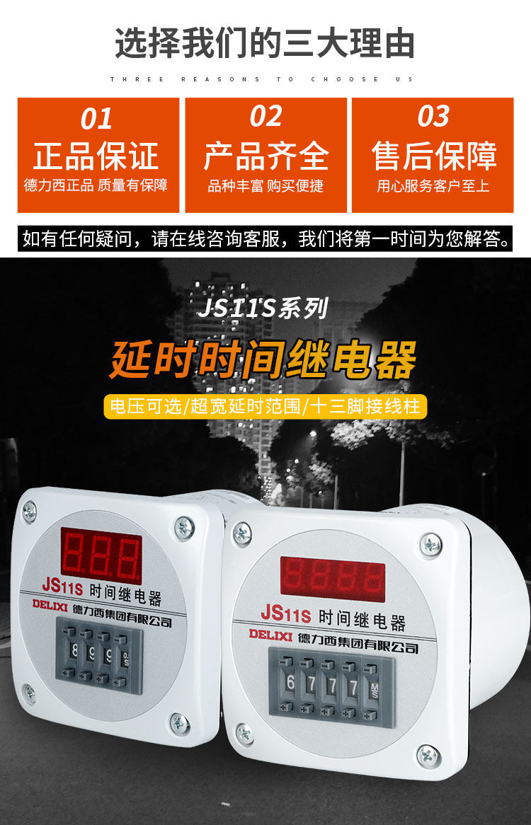 Delixi digital display time relay JS11S three-position adjustment 0.01S-999H 220V 380V