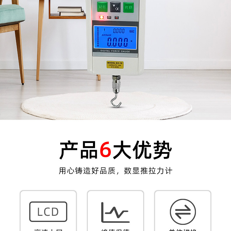 Shandu Push-Pull Force Meter Sh-2N/20/50/100/200/500N Digital Display Force Measurement and Pressure Tester