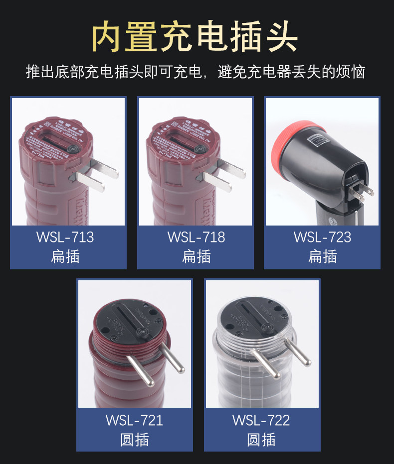 Color Classification Explosion-Proof Model Wsl-713 with Waist Clip-Flat Plug Charging in One,Explosion-Proof Model Wsl-718 Bendable Head-Flat Plug Charging in One,Explosion-Proof Wsl-721 Straight Lamp-Round Plug Charging in One,Explosion-Proof Model Wsl-722 with Side Light-Round Plug Charging in One,Explosion-Proof Model Wsl-723 Can Be Bent and Flat Plug Charging in One,Ordinary Bp-711 with Waist Clip-Type-C Charging,Ordinary Bp-716 Bendable Elbow-Type-C Charging