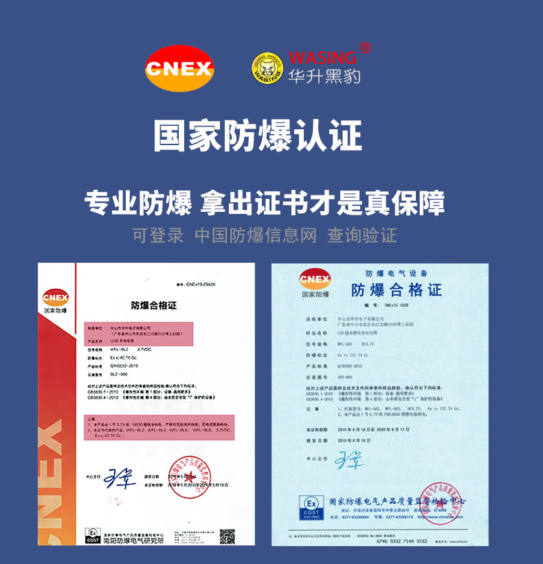 Huasheng Black Panther Led Rechargeable Explosion-Proof Flashlight for Gas Stations, Chemical Plants, Oil Depots, Power Plants, Emergency Lighting