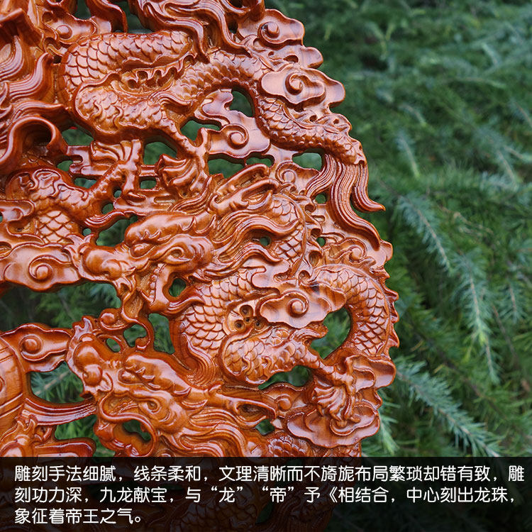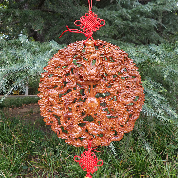 Shape Peach Wood Nine Dragon Pendant Hanging Plate