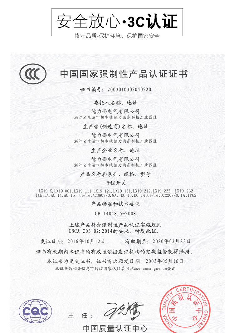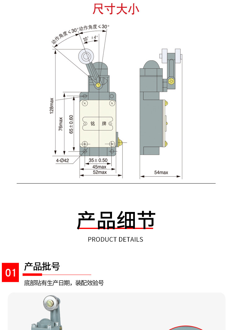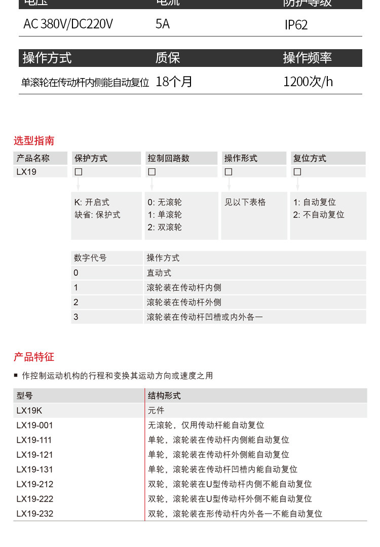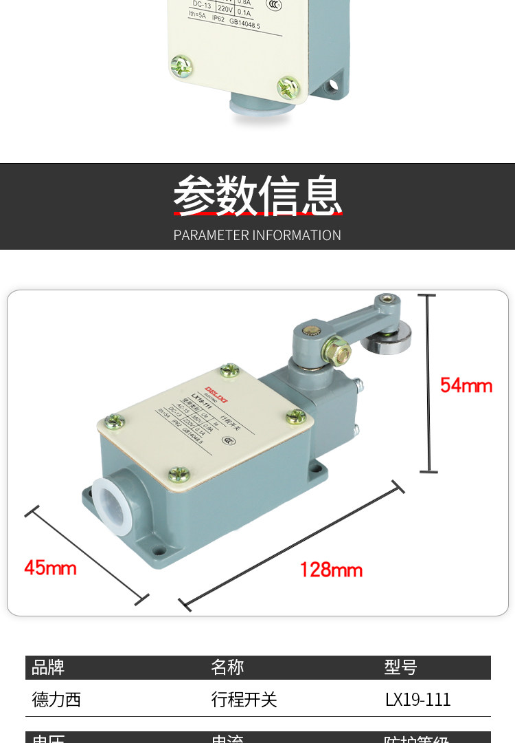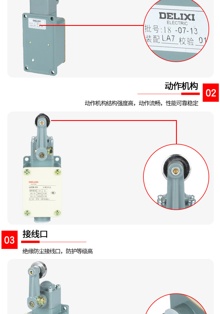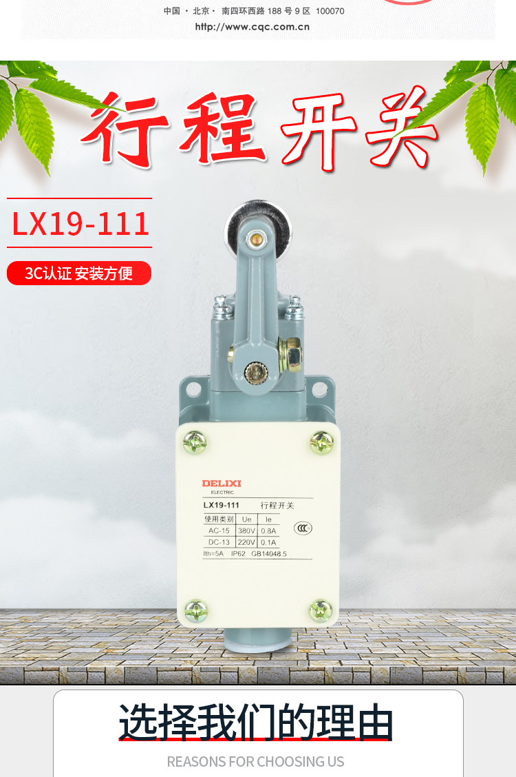 Delixi Limit Switch Lx19-111 Single Wheel Roller Is Installed on the Inside of the Transmission Rod and Can Reset Automatically