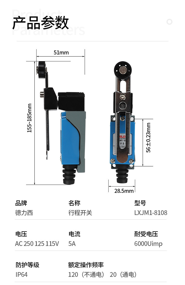 Delixi Travel Switch Limit Switch 8108 Roller Mechanical Micro Switch Self-Resetting Touch Limiter Controller
