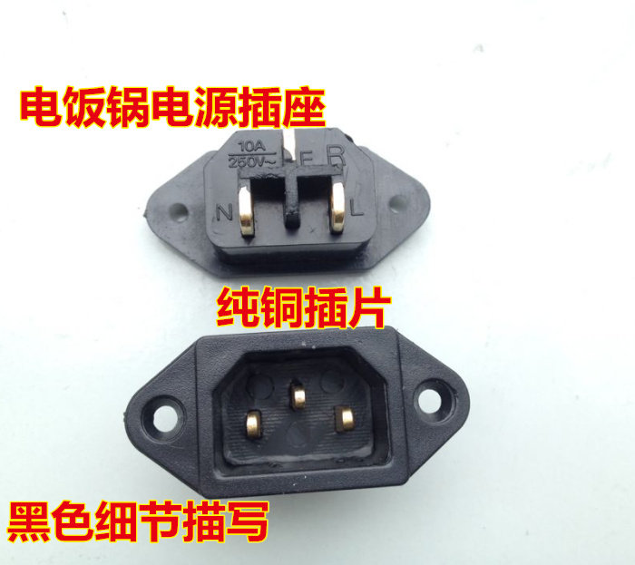 Rice Cooker Power Socket, Pin-Shaped Socket, Black Copper Pins, Three Holes, Small Lug, Pack of 100