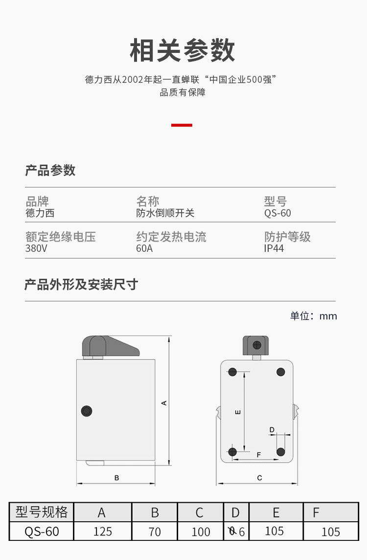 Delixi Qs-60 Waterproof Reverse Switch Qs-60 Reverse Switch Qs-60A Rainproof Motor Switch