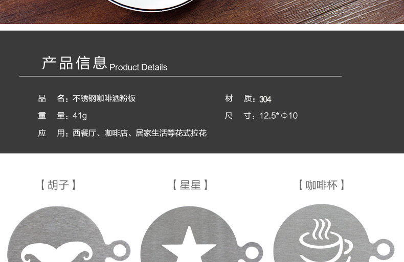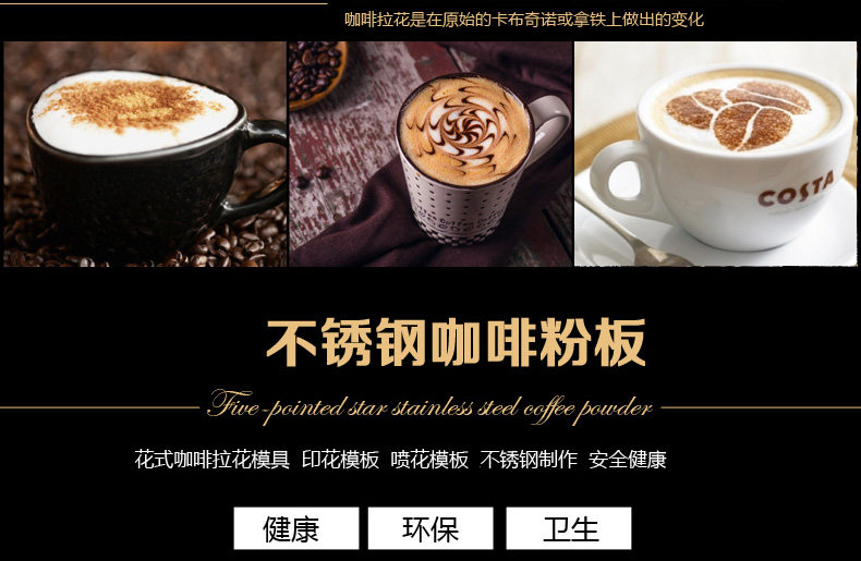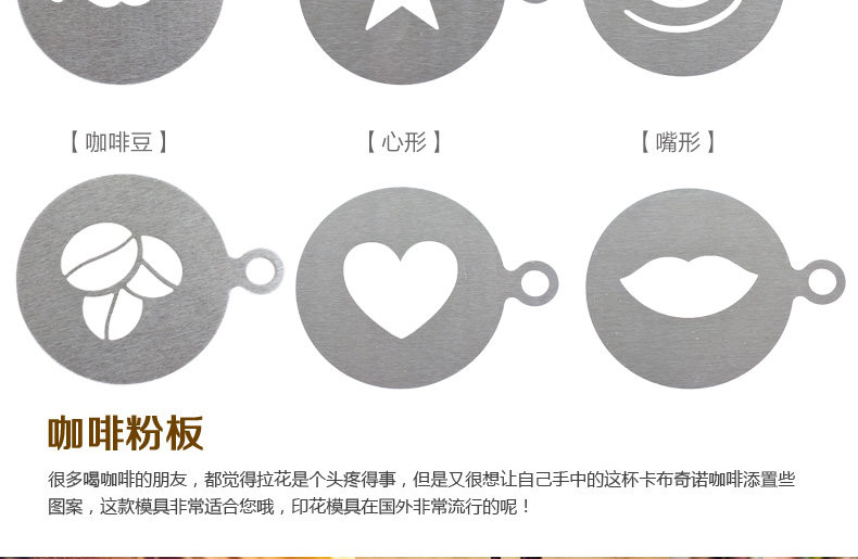 Stainless steel latte art mold, coffee dusting printing pattern template, fancy coffee spray pattern model