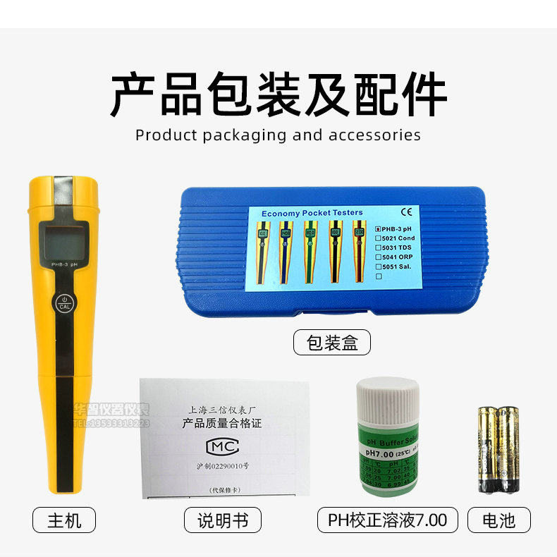Shanghai Sanxin Phb-3 Pen-Type Ph Meter High-Precision Liquid Water Quality Ph Meter 5021 Conductivity Tester