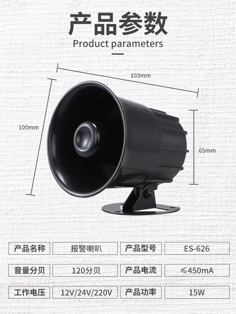 Es-626 Alarm Speaker 120 Decibel Speaker Voice Speaker External Dc12V Alarm Security Alarm Siren