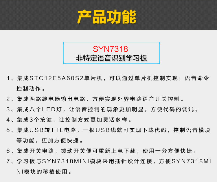 Color Classification Syn7318 Speech Recognition Development Kit,Syn7318 Mini Module,Non-Specific Voice Learning Board (Bottom Board Only)