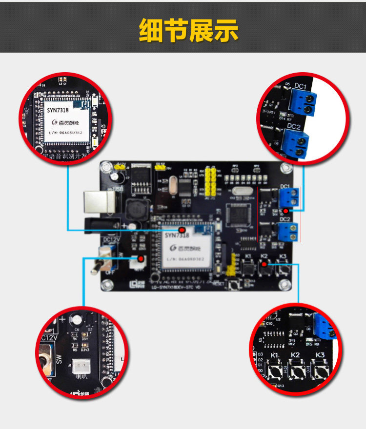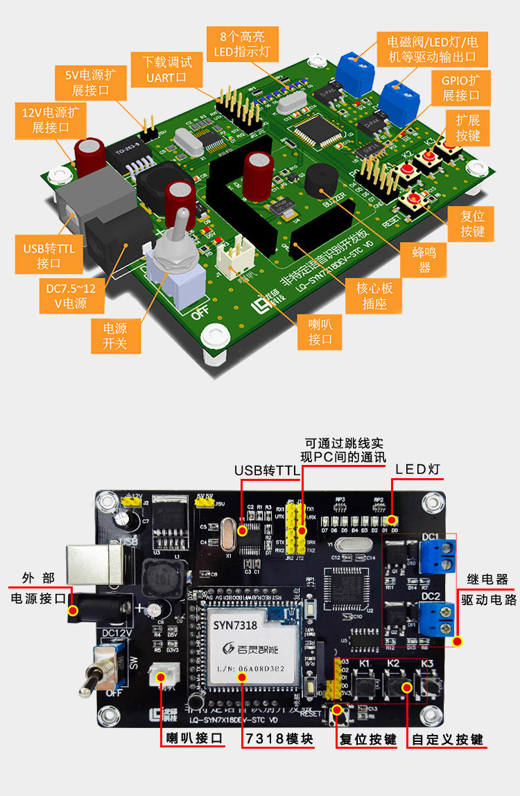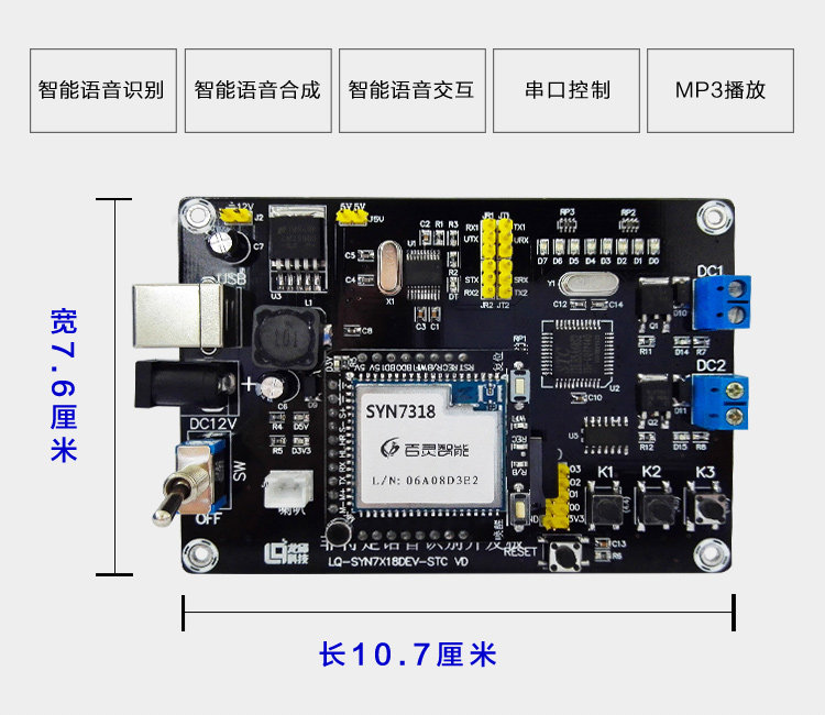 Longqiu Syn7318 Non-Specific Speech Recognition Development Board Base Board (Core Board Not Included) Speech Synthesis
