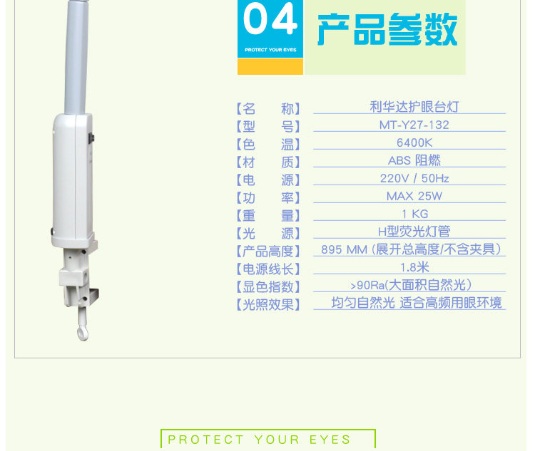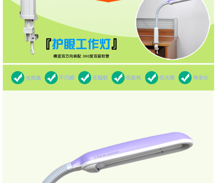 Lihuada MT-132 eye protection desk lamp workshop work light optical inspection lamp three-wavelength clip-on 27W fluorescent lamp