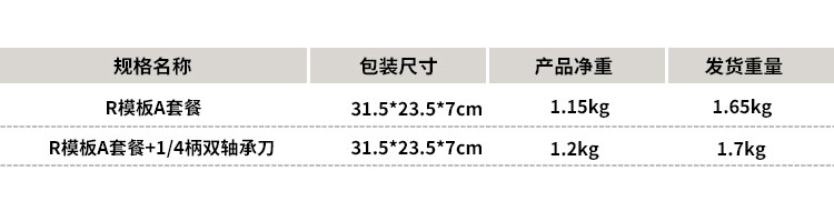 Color Classification R Template (Bakelite) a Package,R Template (Bakelite) a Package + 1/4 Handle Double Bearing Knife,R Template (Aluminum Body) a Package,R Template (Aluminum Body) a Package + 1/4 Handle Double Bearing Knife