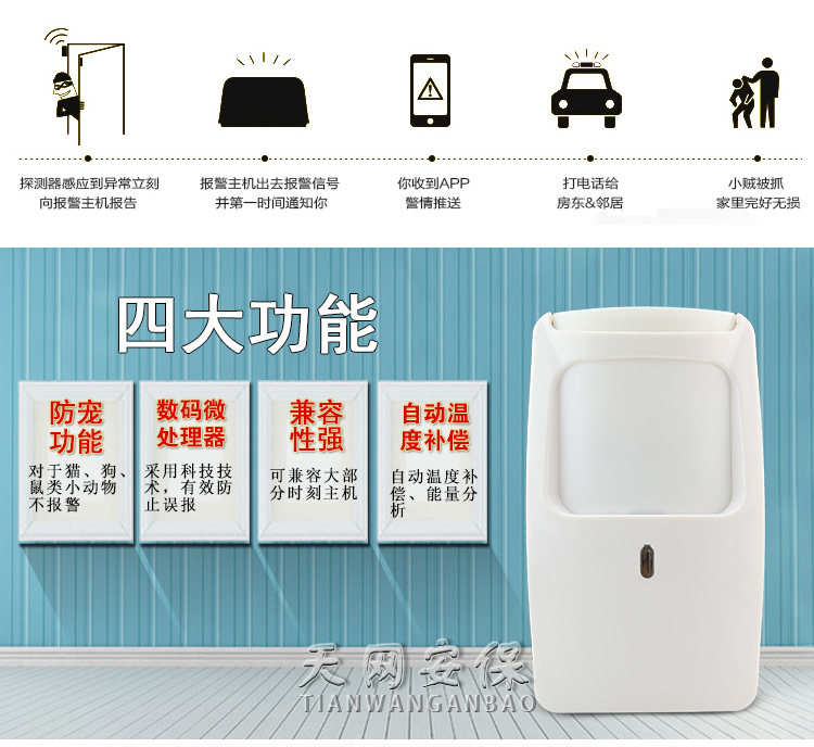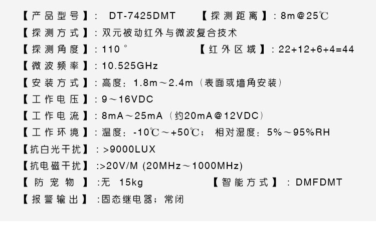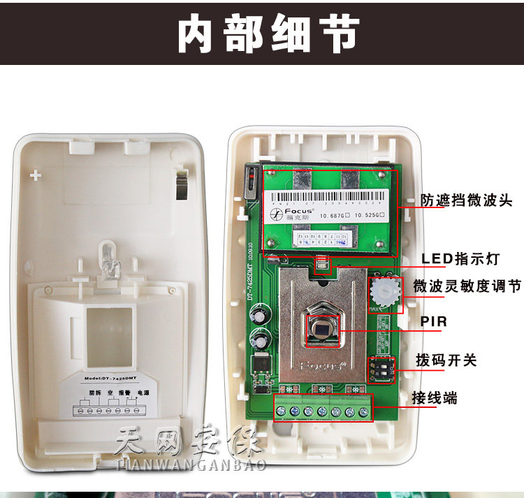Fcos Microwave Dual-Tasting Wired Anti-Pet Detection Dt-7425 Infrared Alarm Wired Infrared Probe