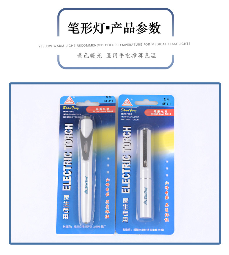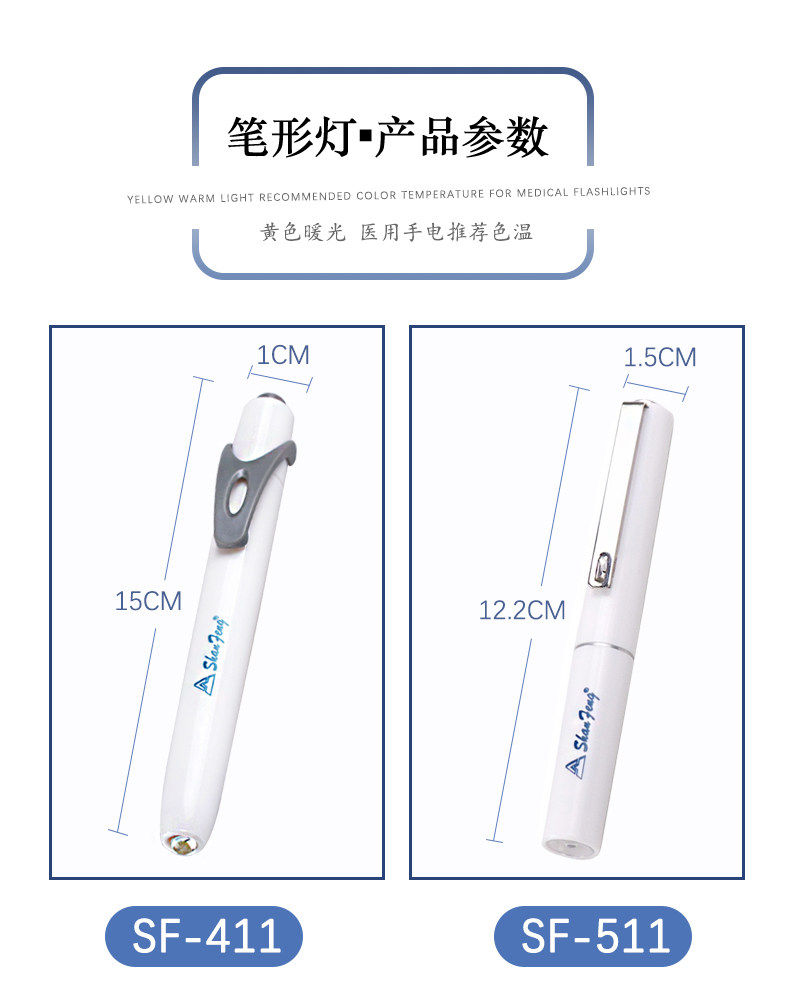 Shanfeng Led Yellow Light Pen-Type Flashlight 411 Pupil Pen 511 Medical Pen-Shaped Searchlight for Doctors and Nurses