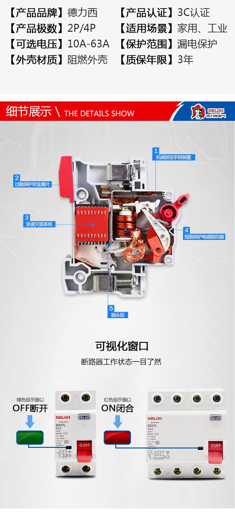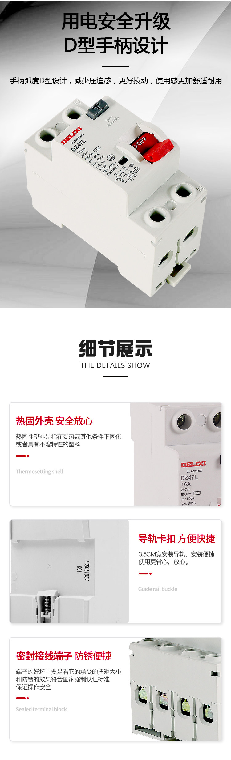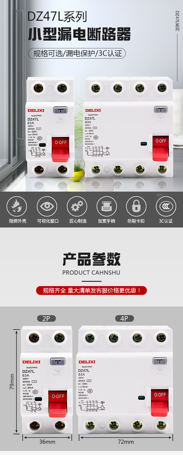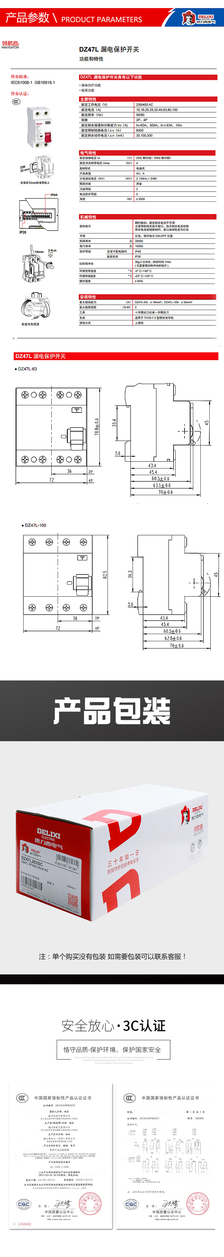 Delixi Electromagnetic Leakage Protector Dz47L Household 2P 32A Leakage Protection 40A 63A Air Switch Circuit Breaker
