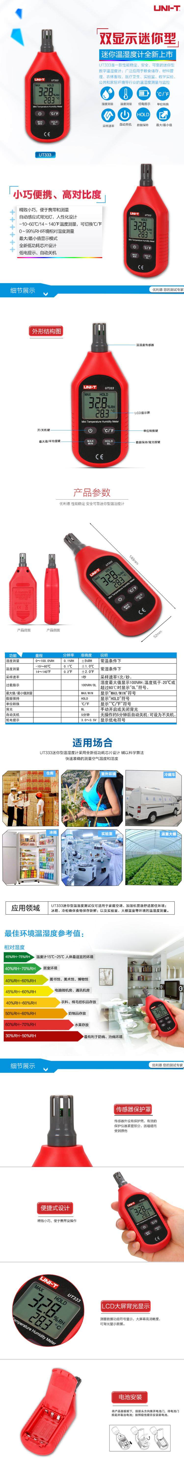 Uliide Ut333/Ut333Bt Mini Temperature and Humidity Meter Industrial Environment Laboratory Hygrometer/Thermometer