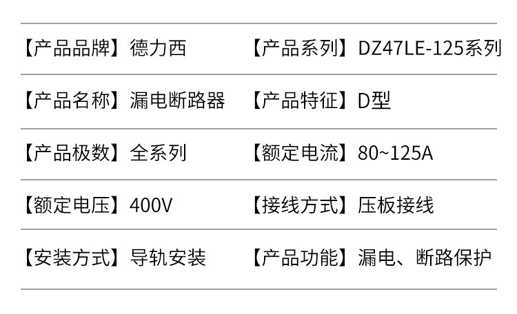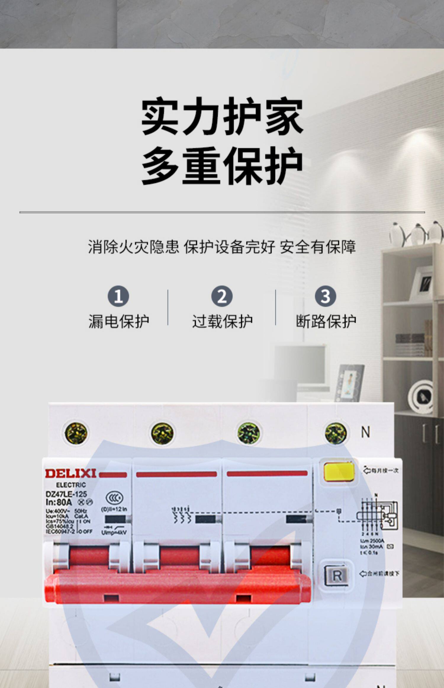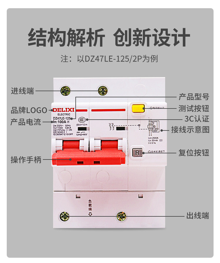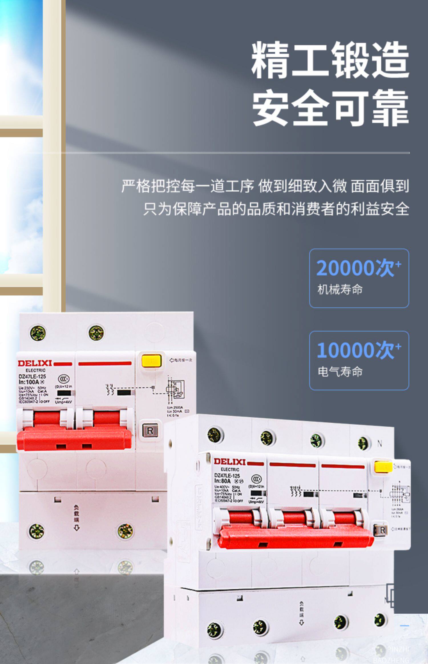 Delixi Leakage Protector Dz47Le-125 Circuit Breaker with Leakage Protection for Home Use 2P 3P Circuit Breaker 100A125A