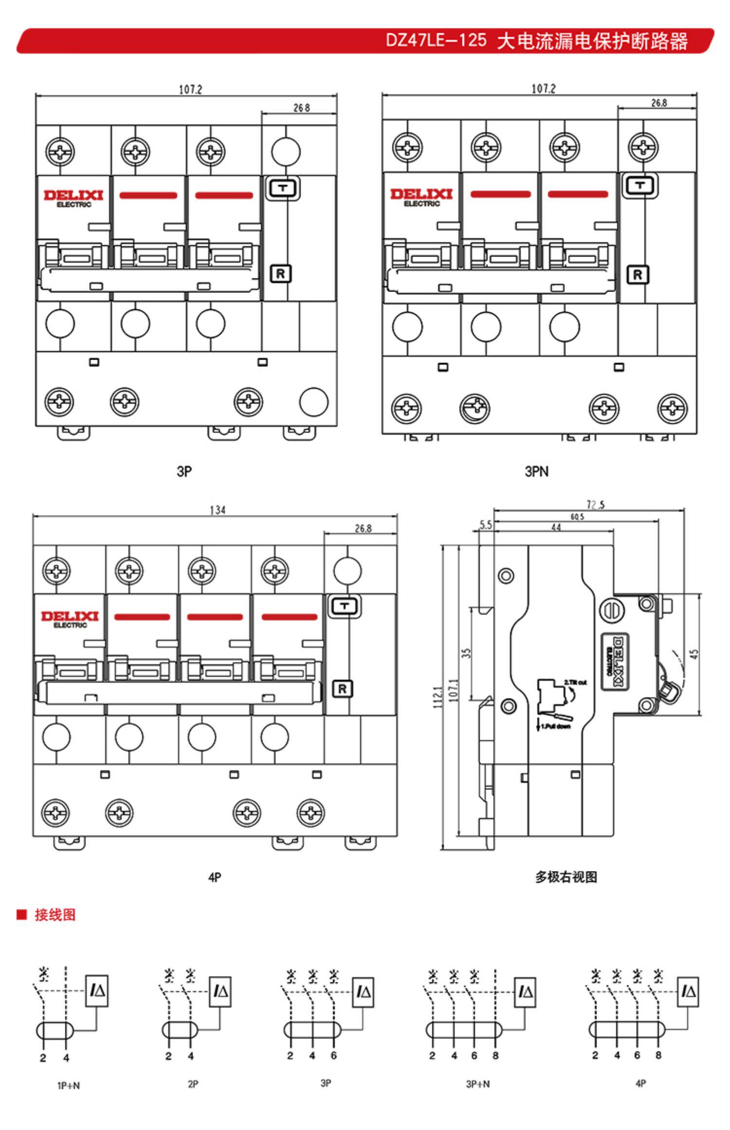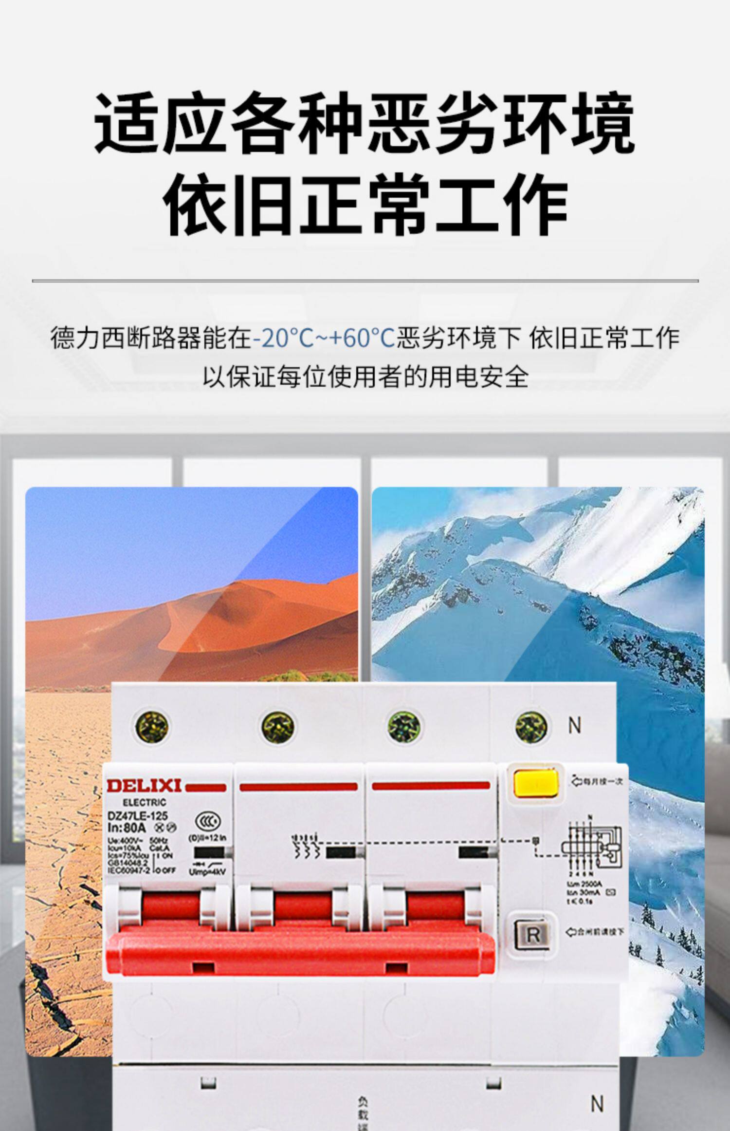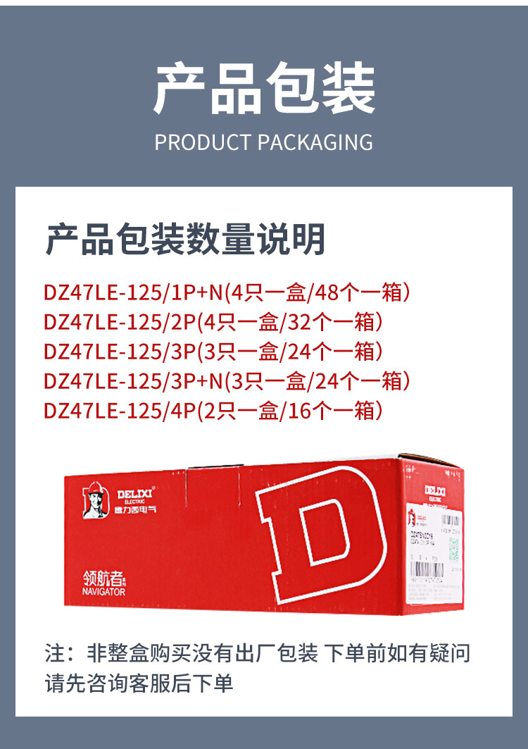 Delixi Leakage Protector Dz47Le-125 Circuit Breaker with Leakage Protection for Home Use 2P 3P Circuit Breaker 100A125A