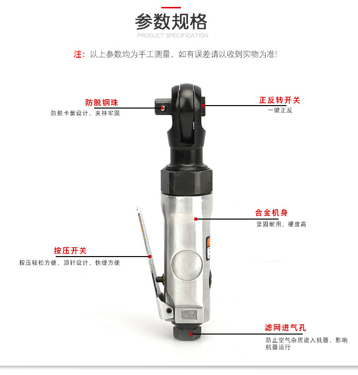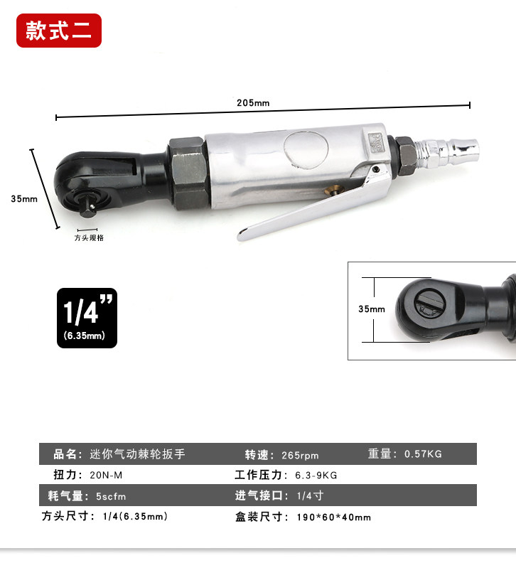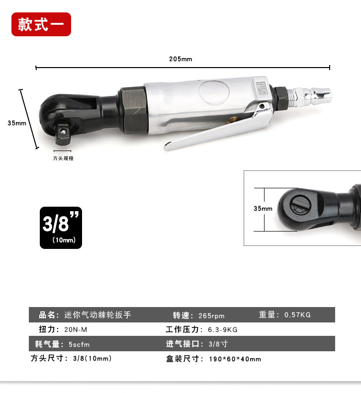 Model Mini Right Angle 1/4" Drive 3/8" Drive Pneumatic Ratchet Wrench