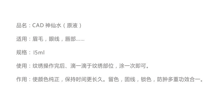 Korean semi-permanent fairy water, tattoo repair, tattoo eyebrow and lip line fixing colorant, color retention and color fixing fairy water