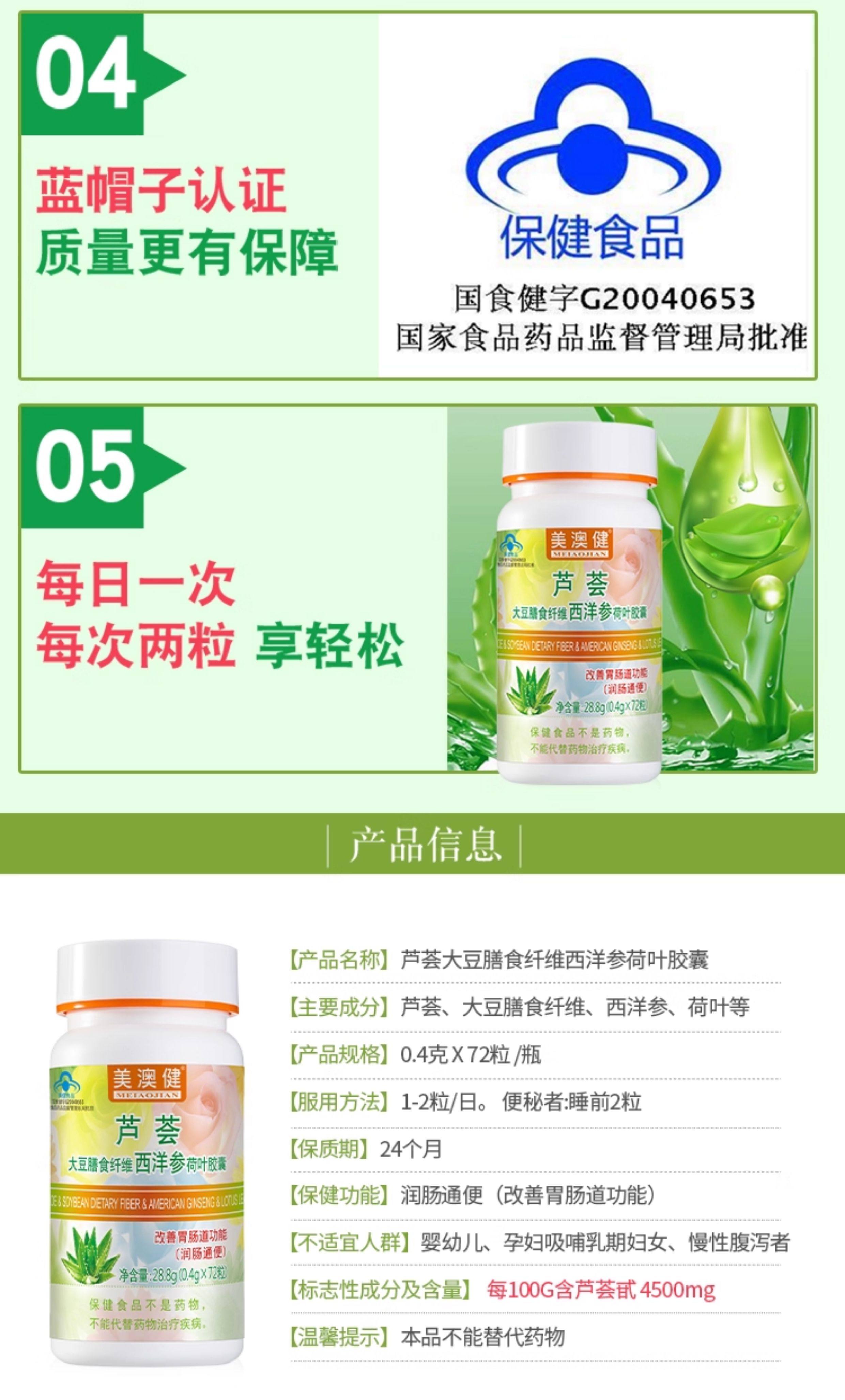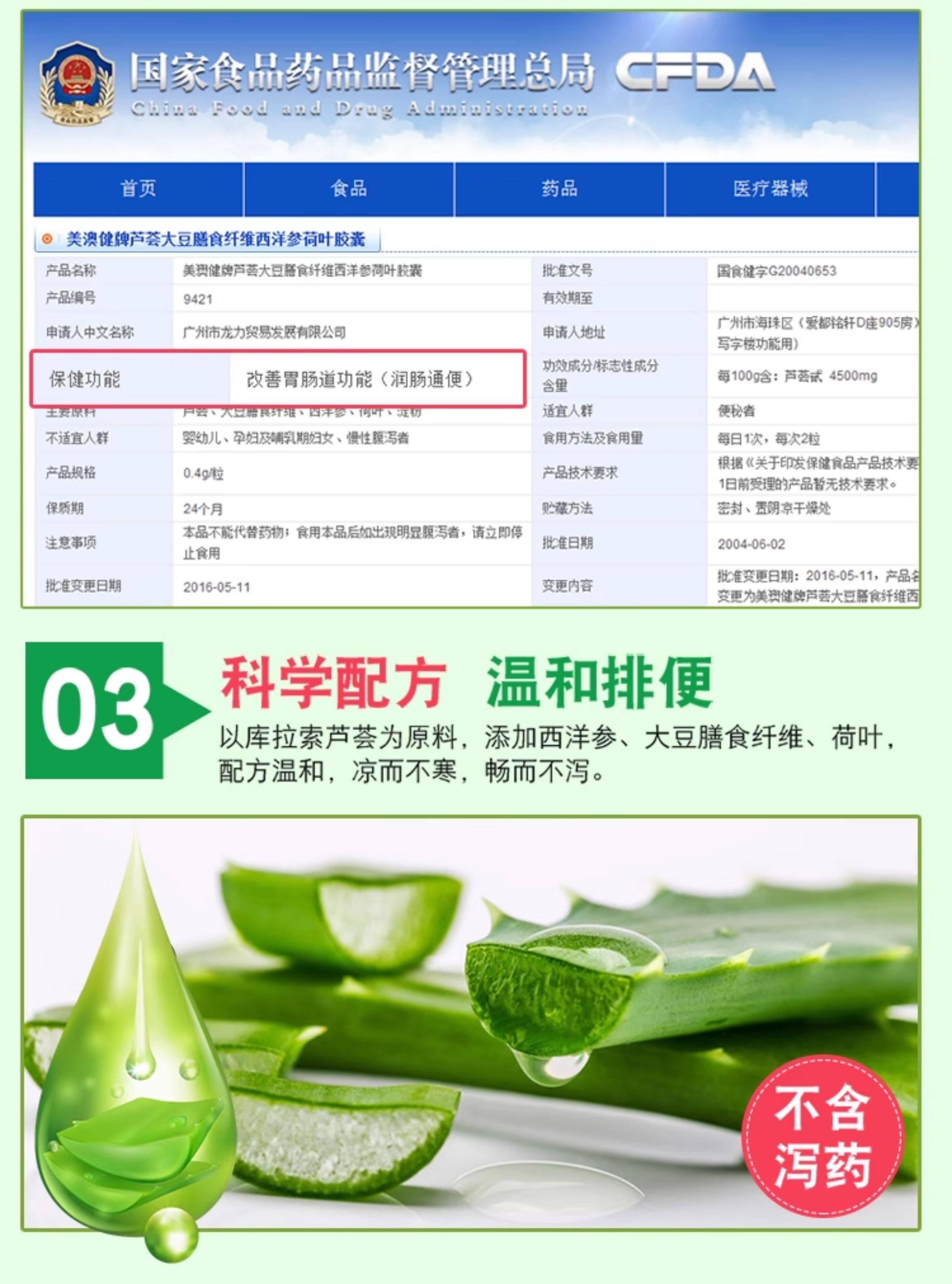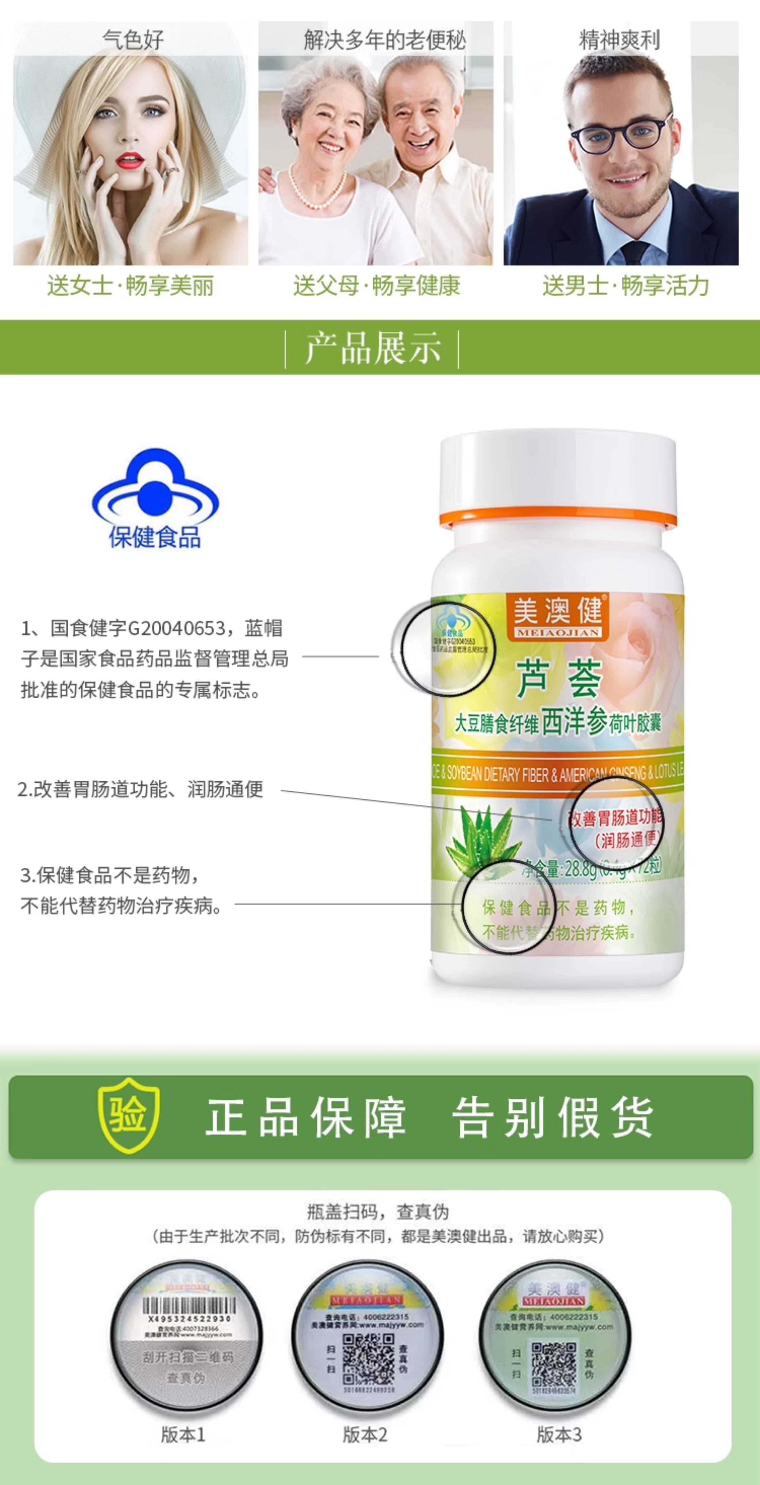 Health food product name Meiaojian Aloe Vera Soy Dietary Fiber American Ginseng Lotus Leaf Capsules