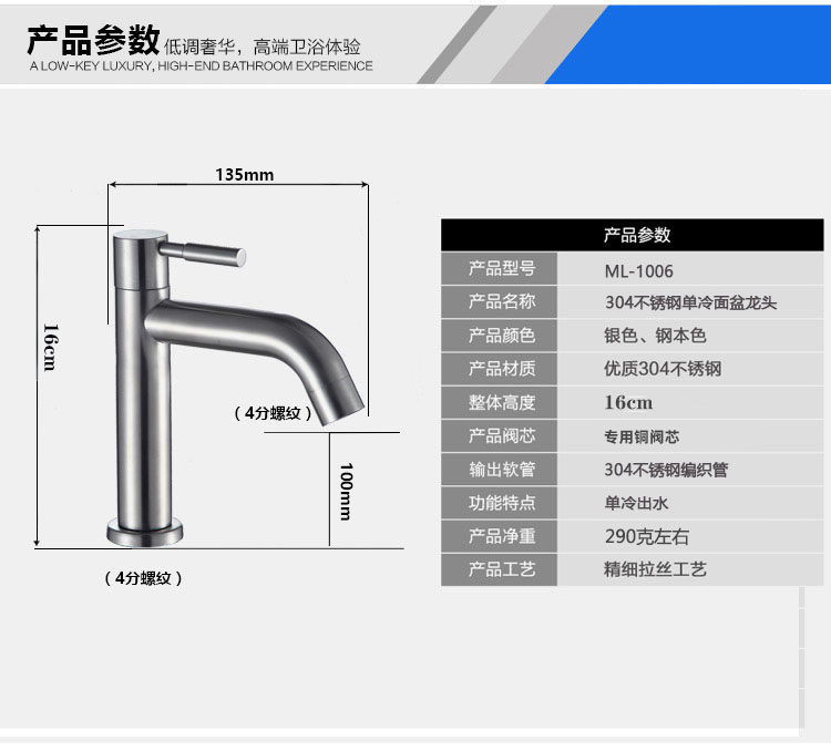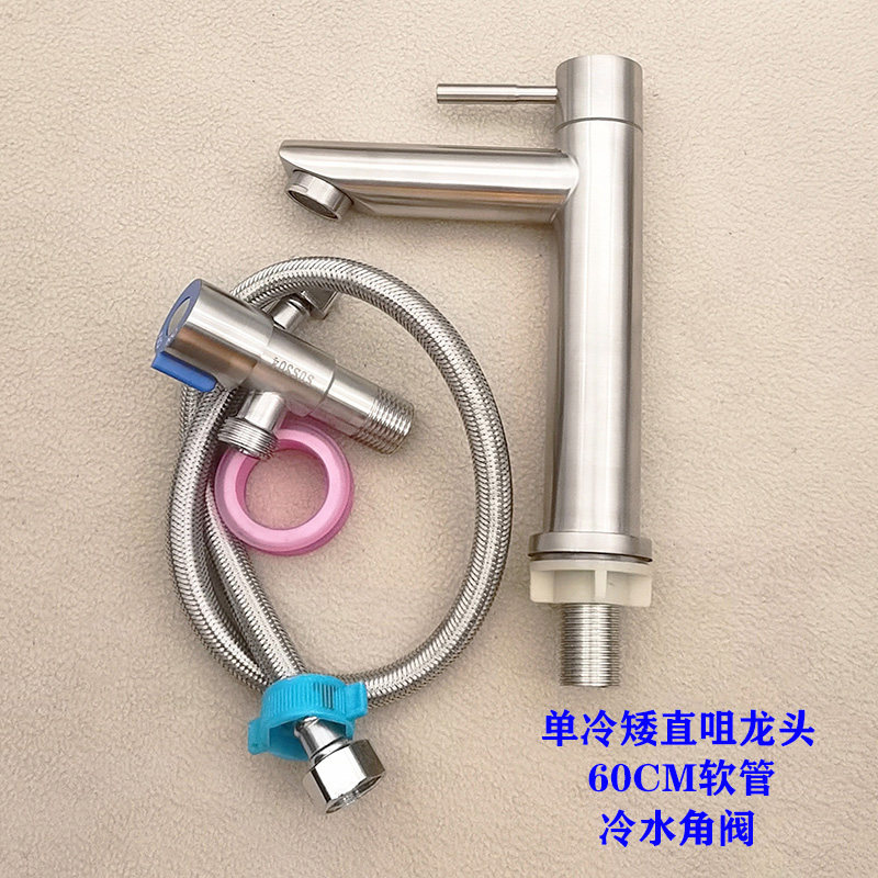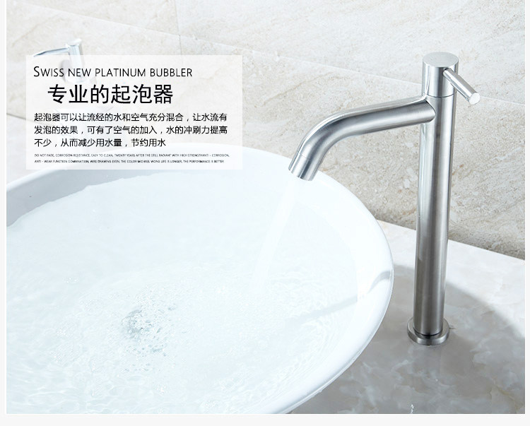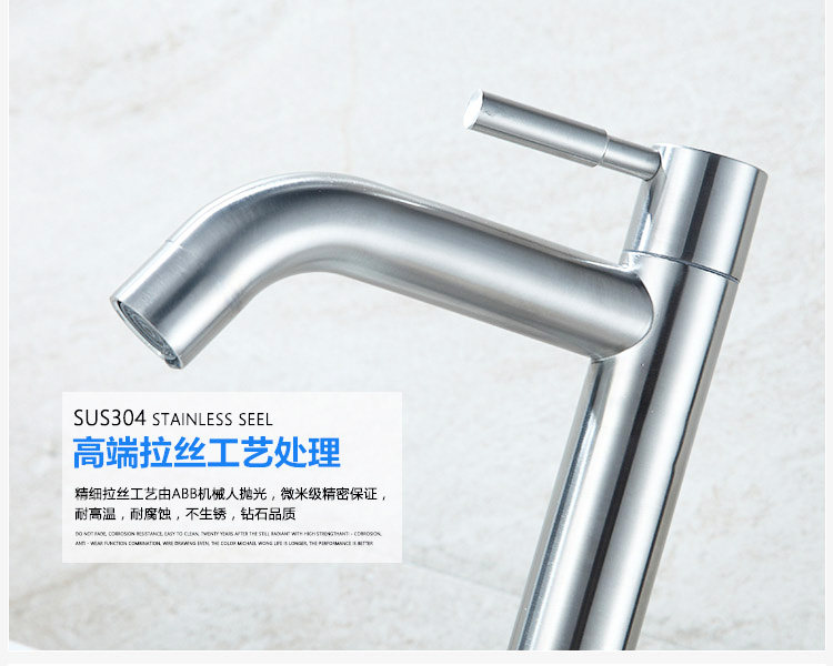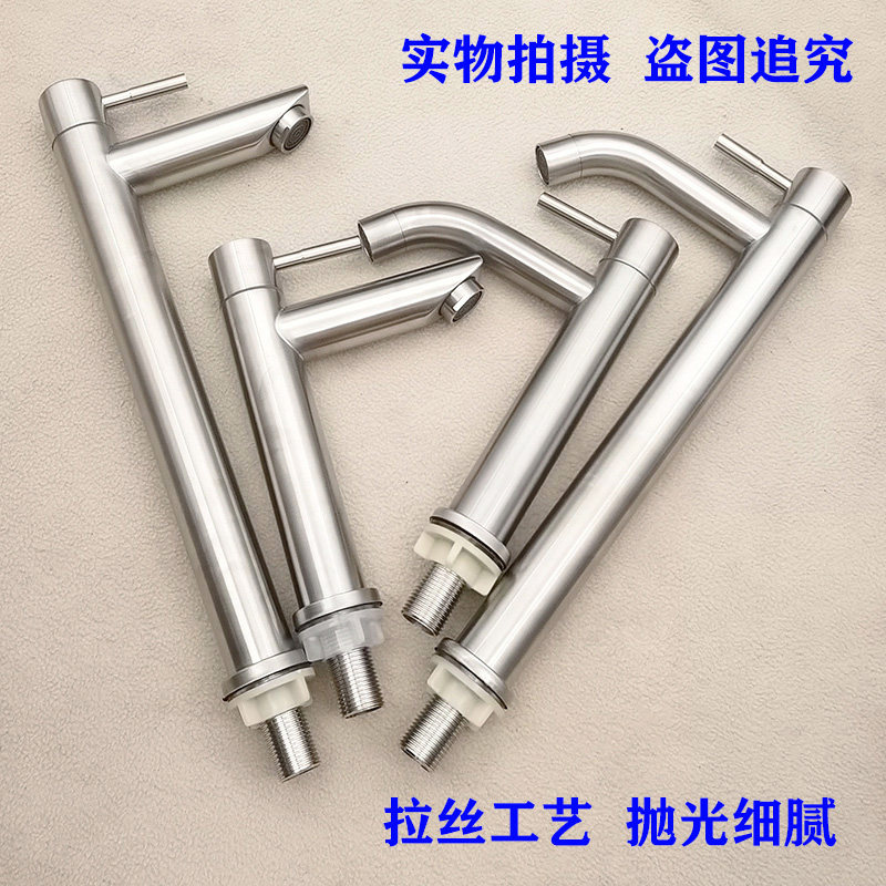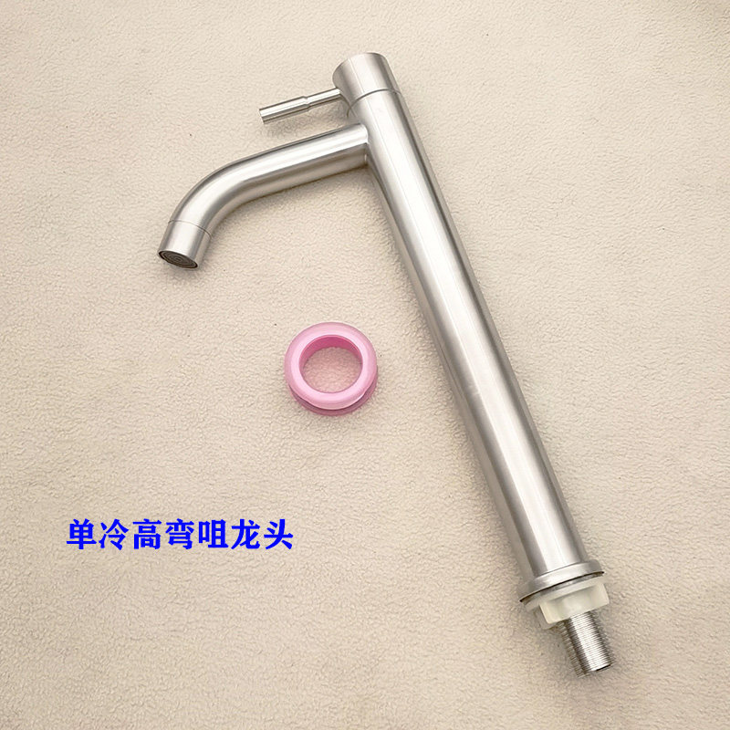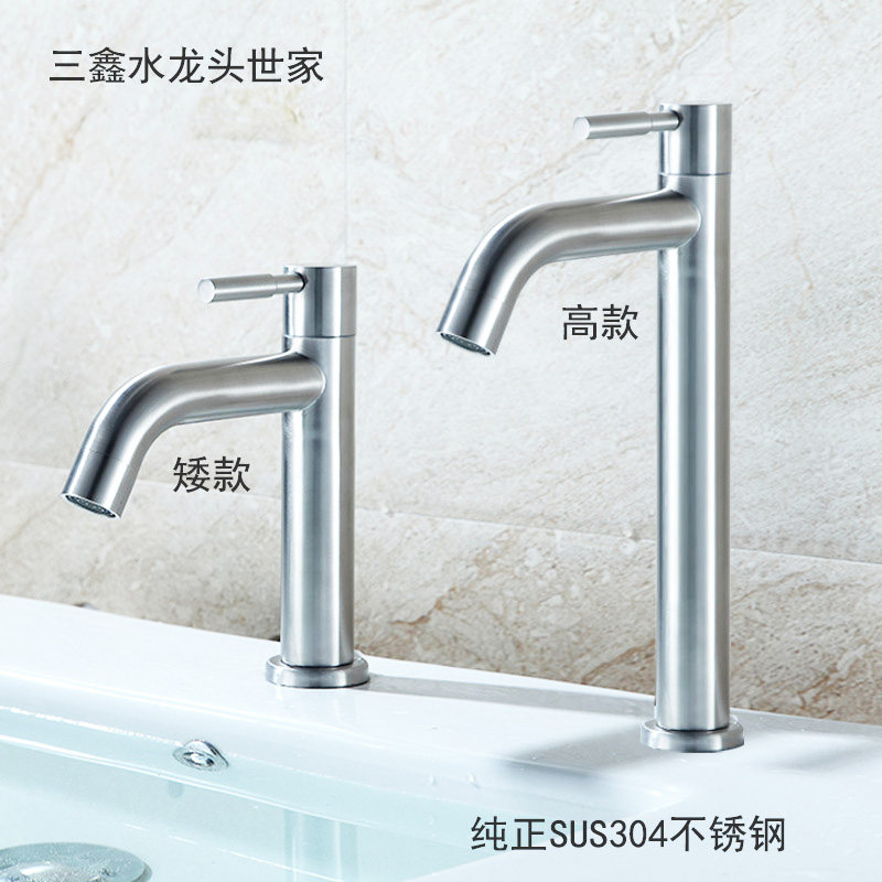 304 Stainless Steel Lead-Free Single Cold Water Basin Faucet Single-Hole Countertop Basin Heightened Washbasin Copper Core Faucet Manufacturer