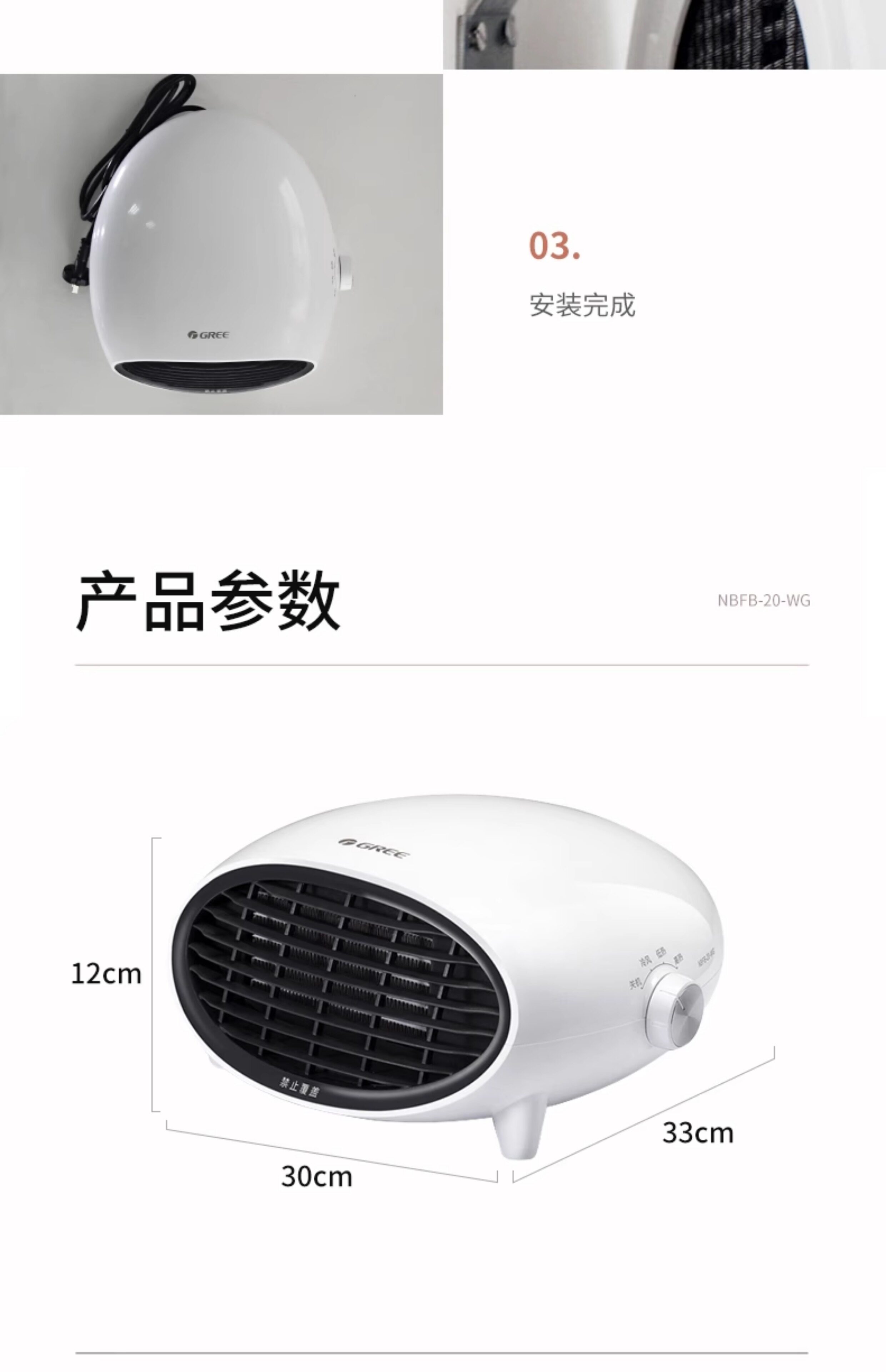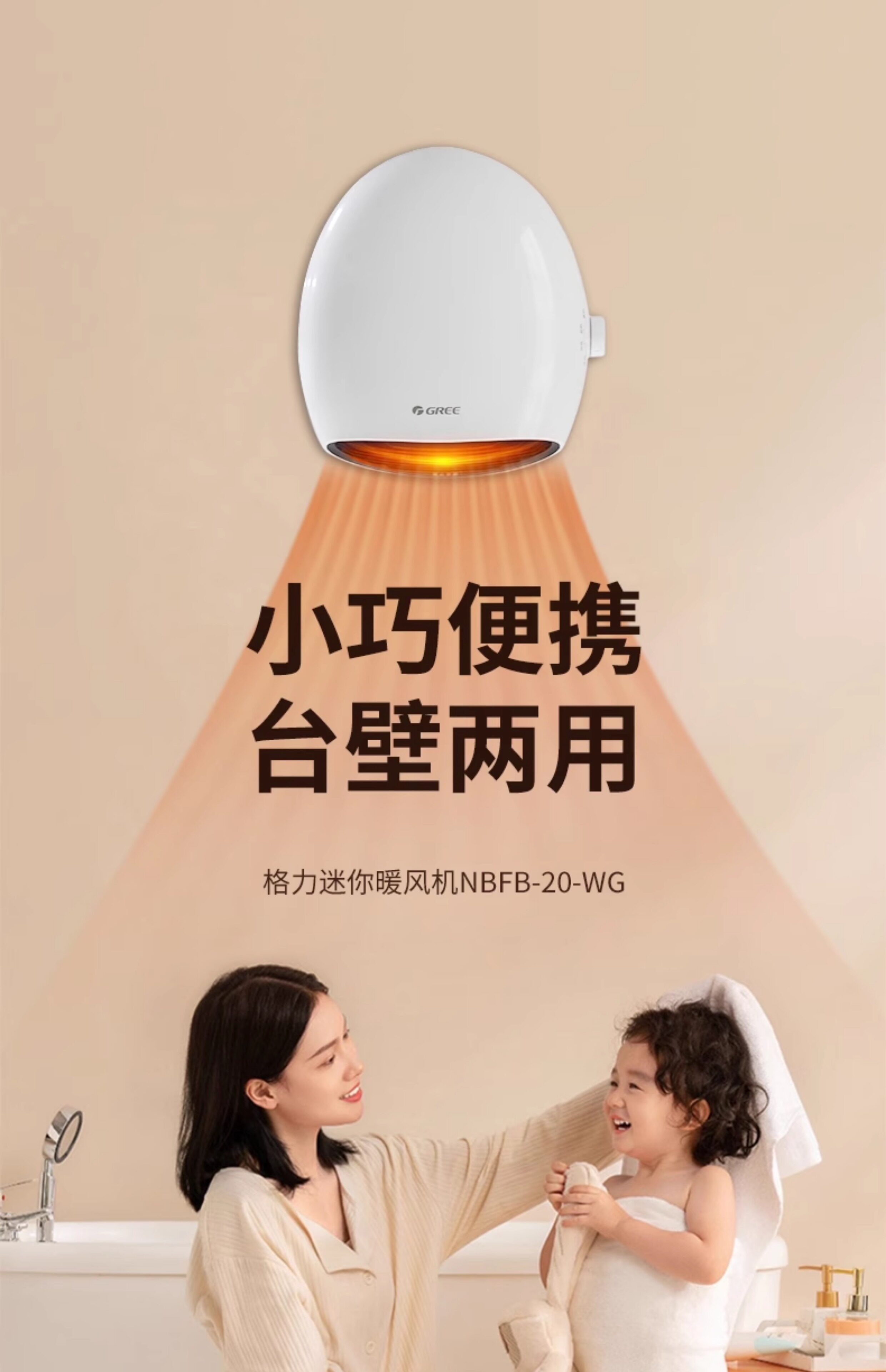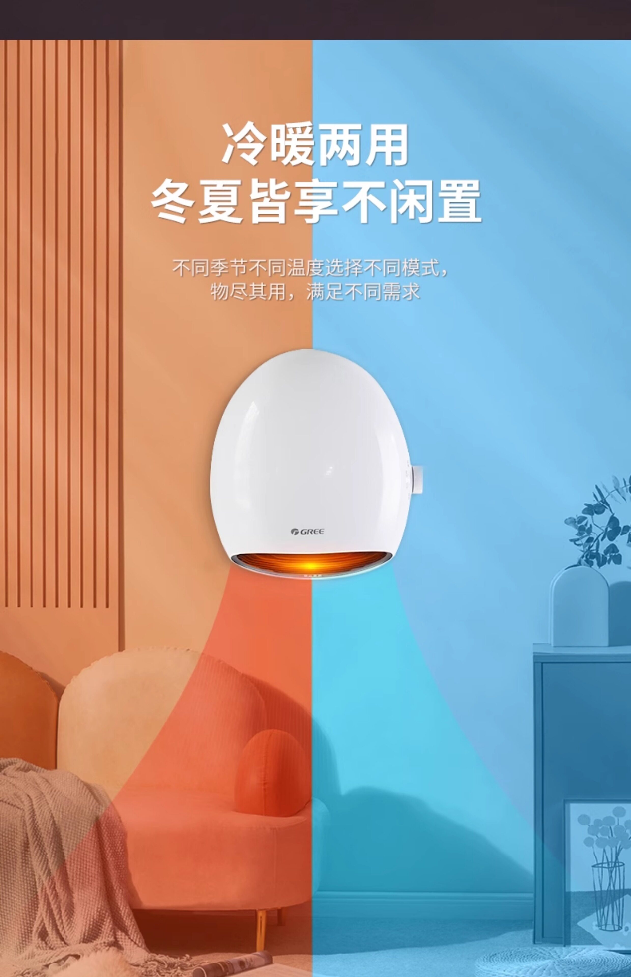 Gree Electric Heater Fan, Hot Air Blower, Electric Heater, Heating Appliance for Home and Bathroom, Waterproof Wall-Mounted Energy-Saving Heater