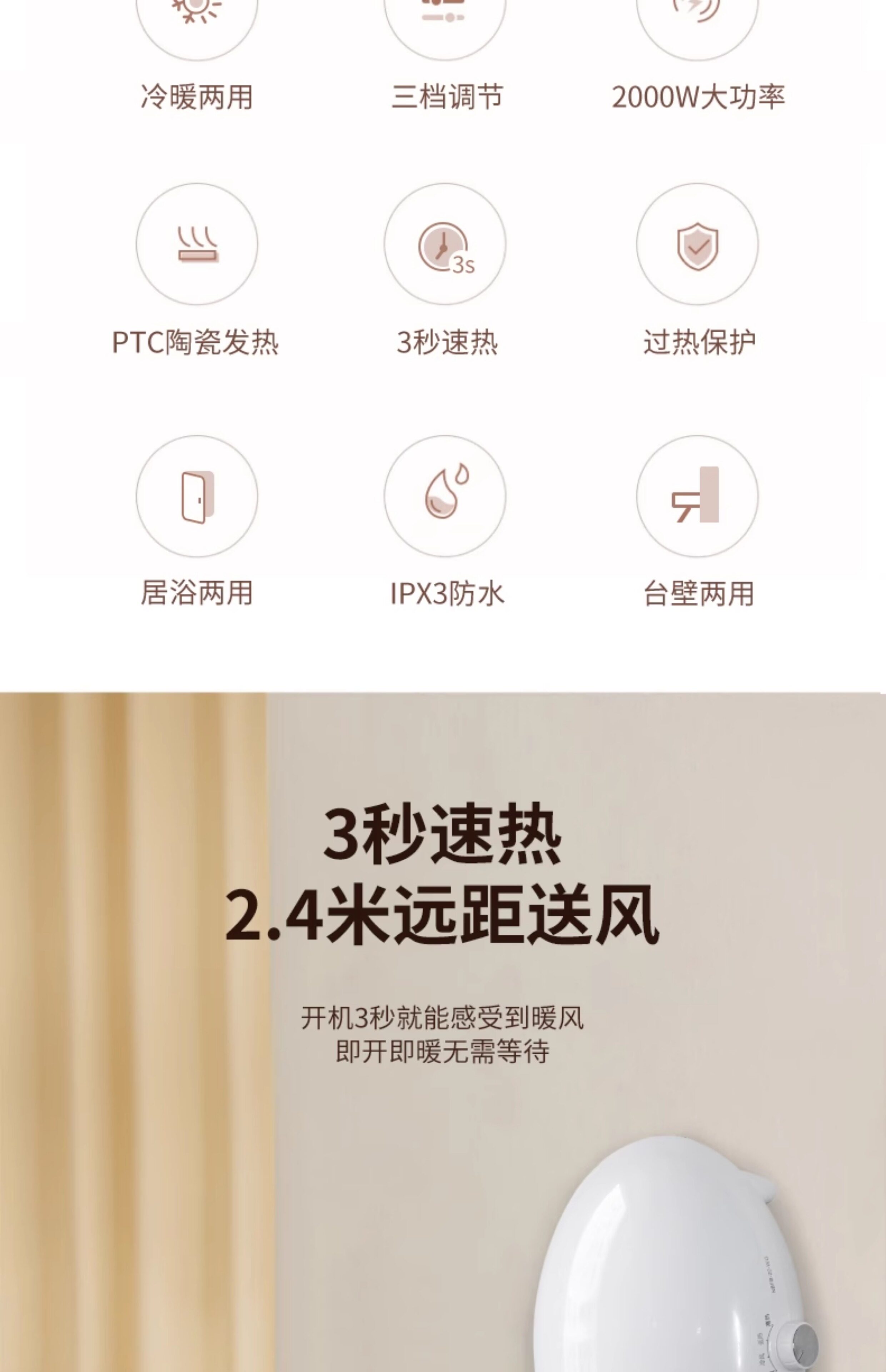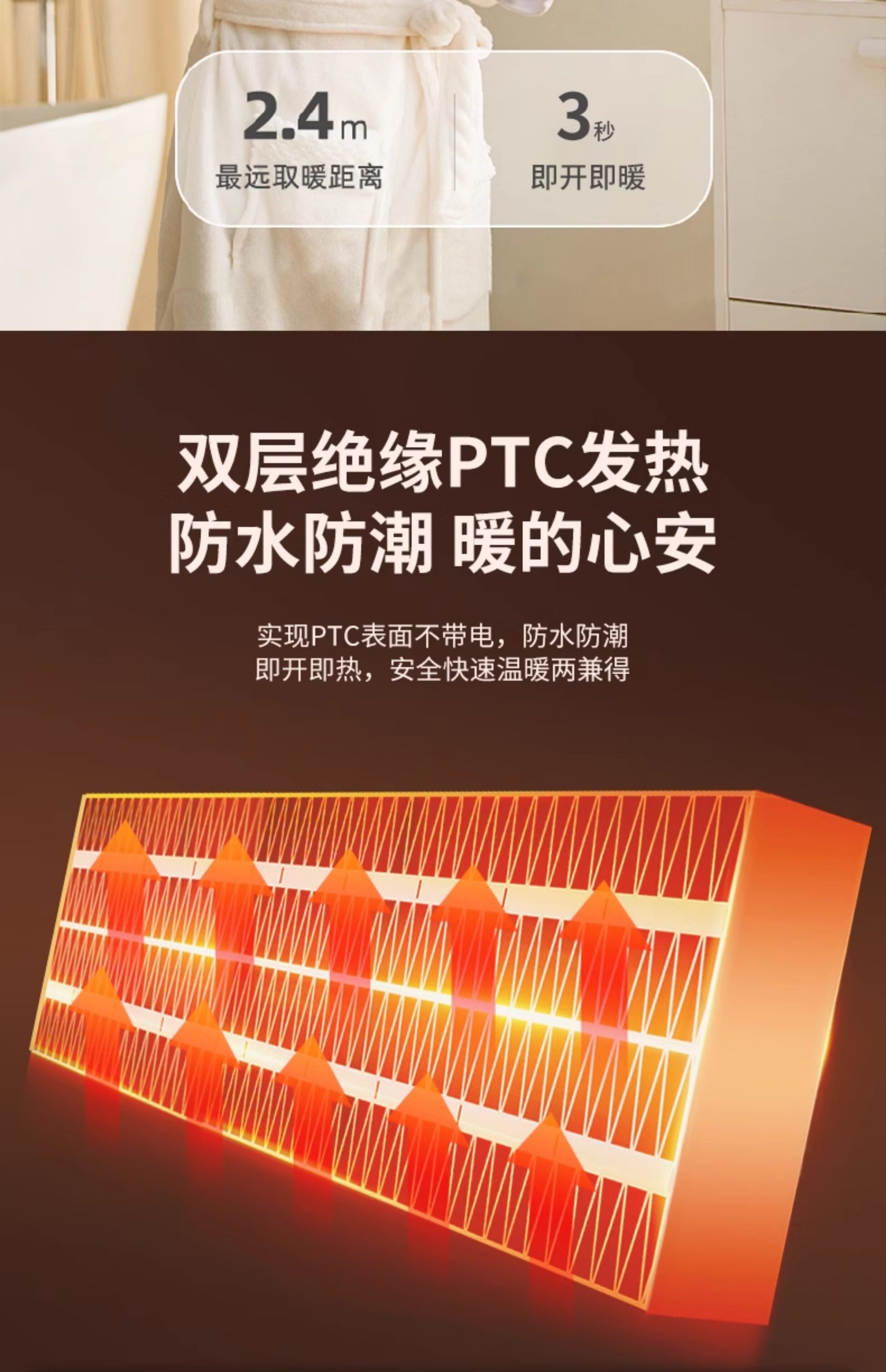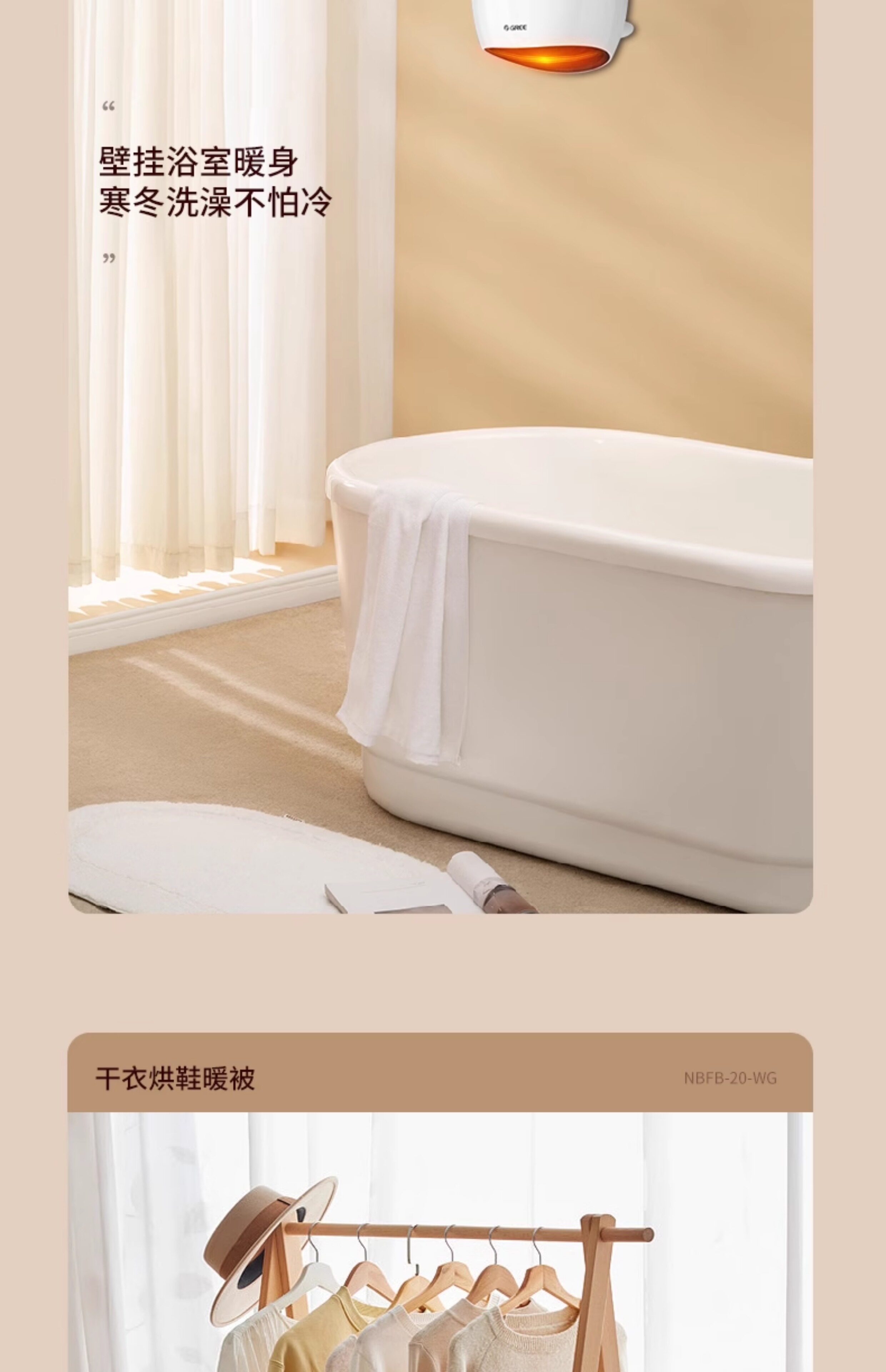 Gree Electric Heater Fan, Hot Air Blower, Electric Heater, Heating Appliance for Home and Bathroom, Waterproof Wall-Mounted Energy-Saving Heater