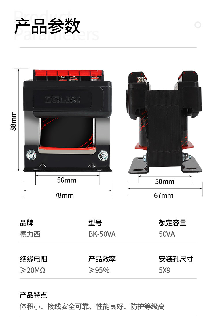 Delixi 50W Control Transformer Bk-50Va Input 380V/220V Converts to 110V/36V/24V/6V