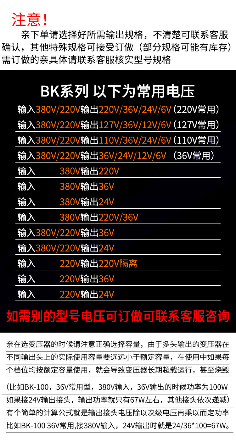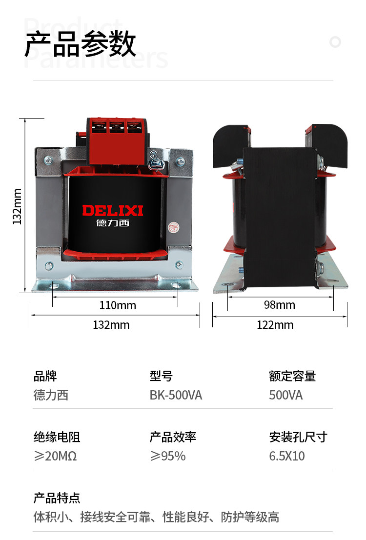 Delixi 500W Control Transformer Bk-500Va Input 380V/220V Converts to 110V/36V/24V/6V