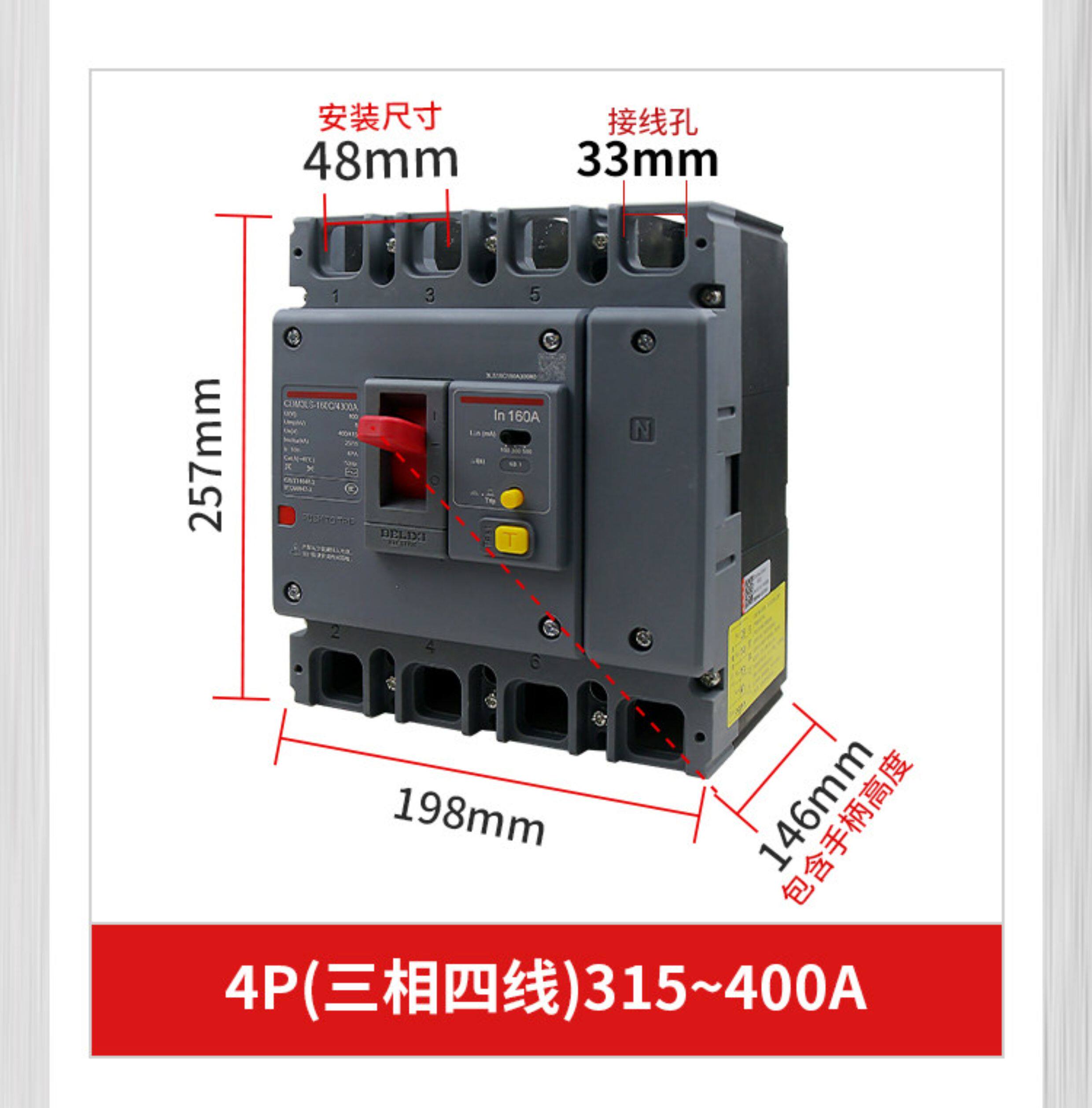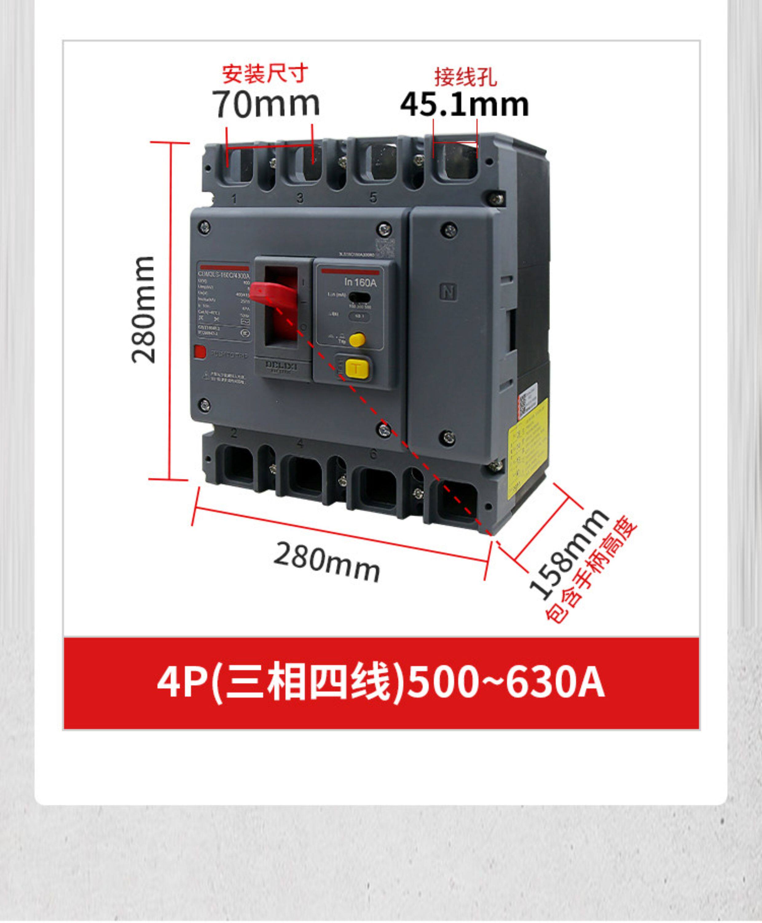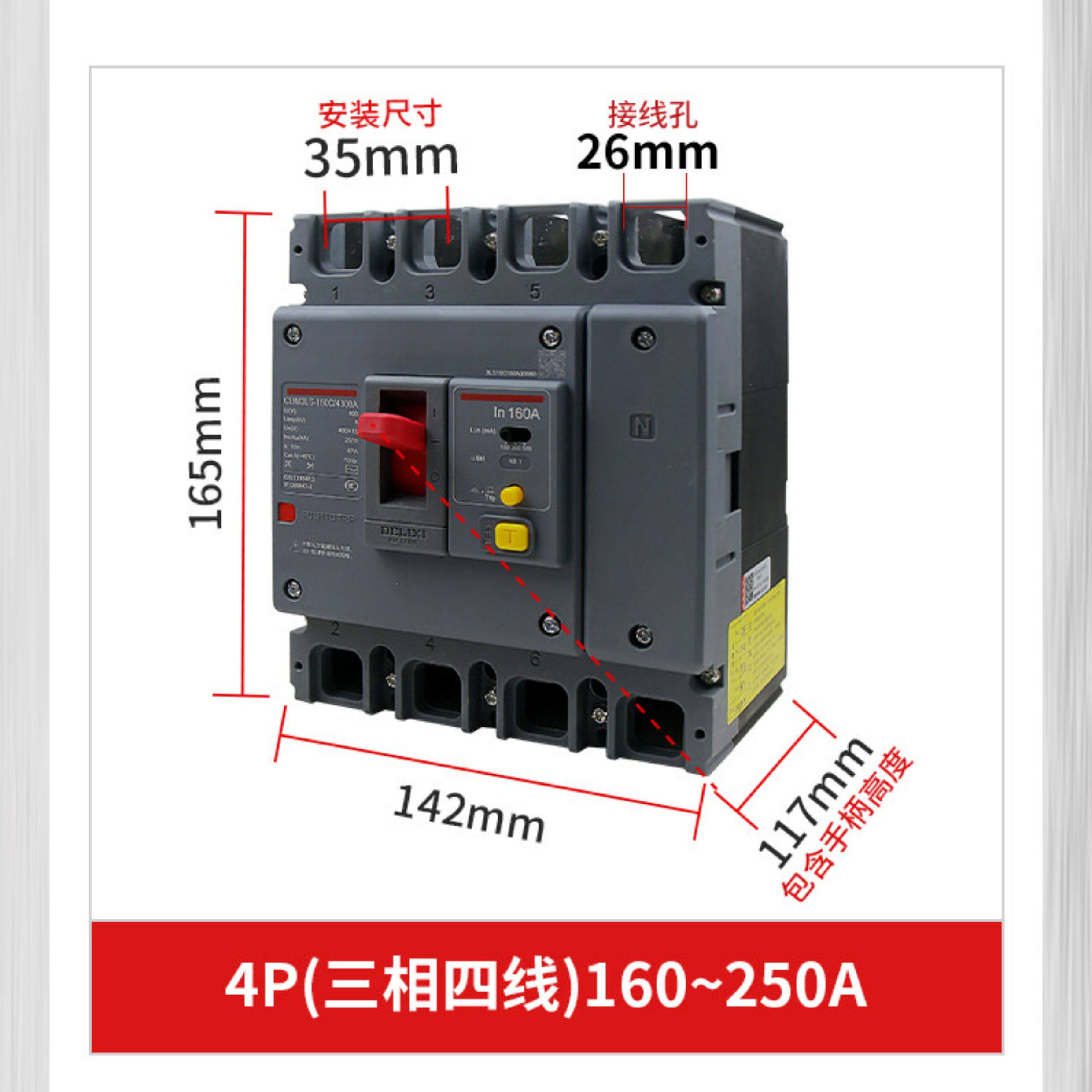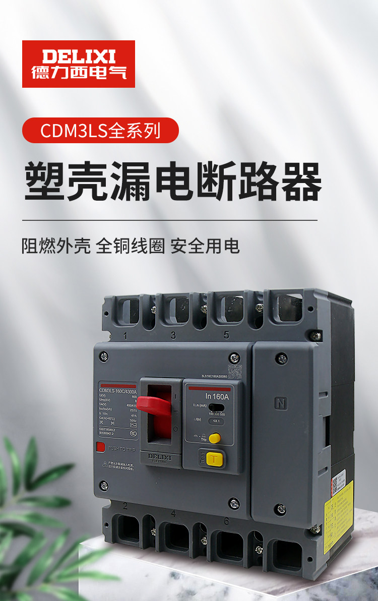 Delixi Three-Phase Four-Wire Circuit Breaker with Leakage Protection Plastic Case Cdm3Ls-3P4P A125A160A200A
