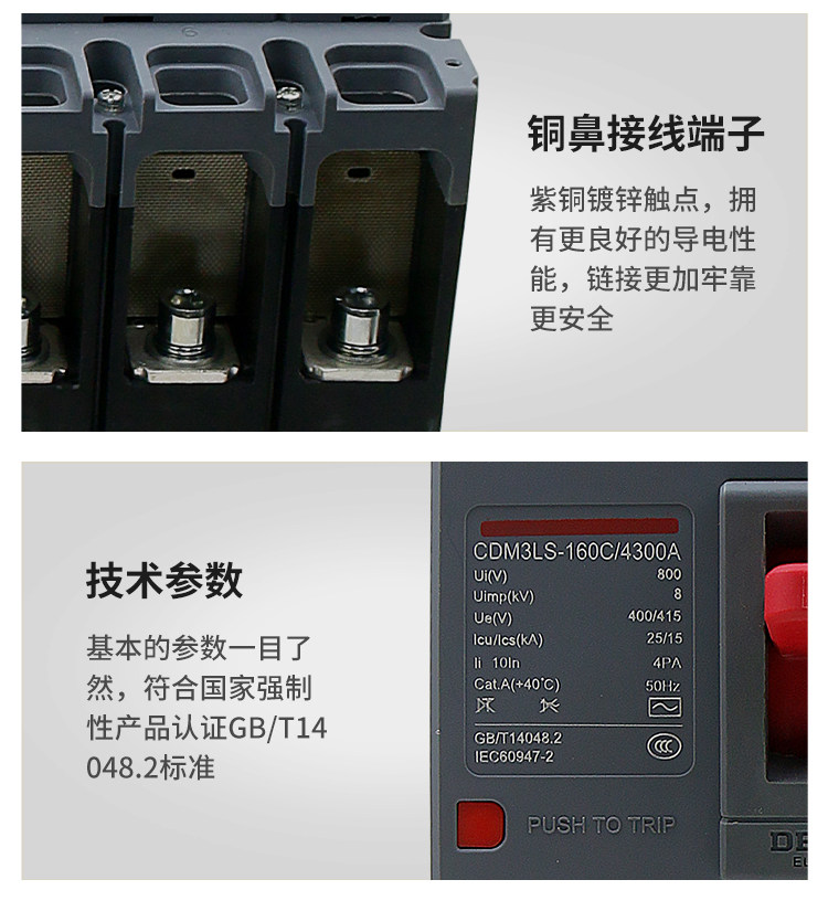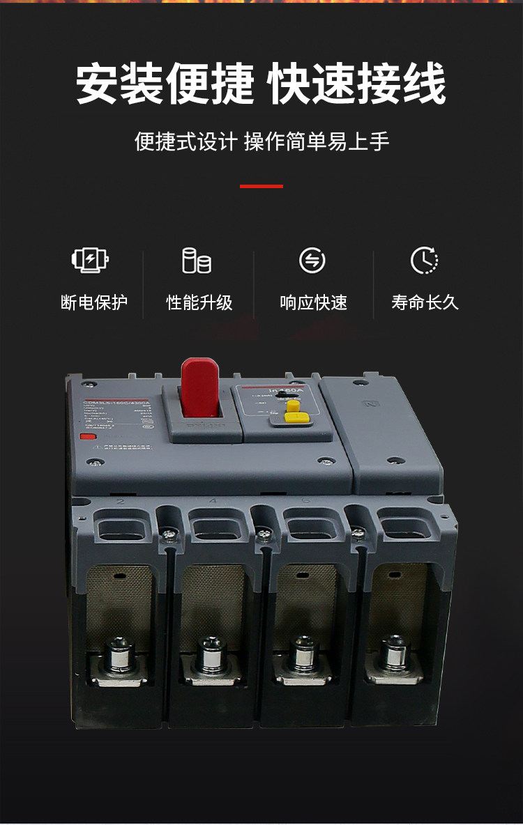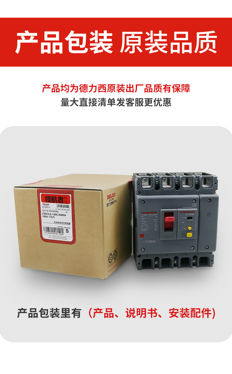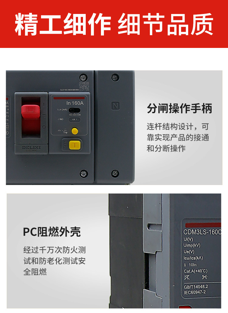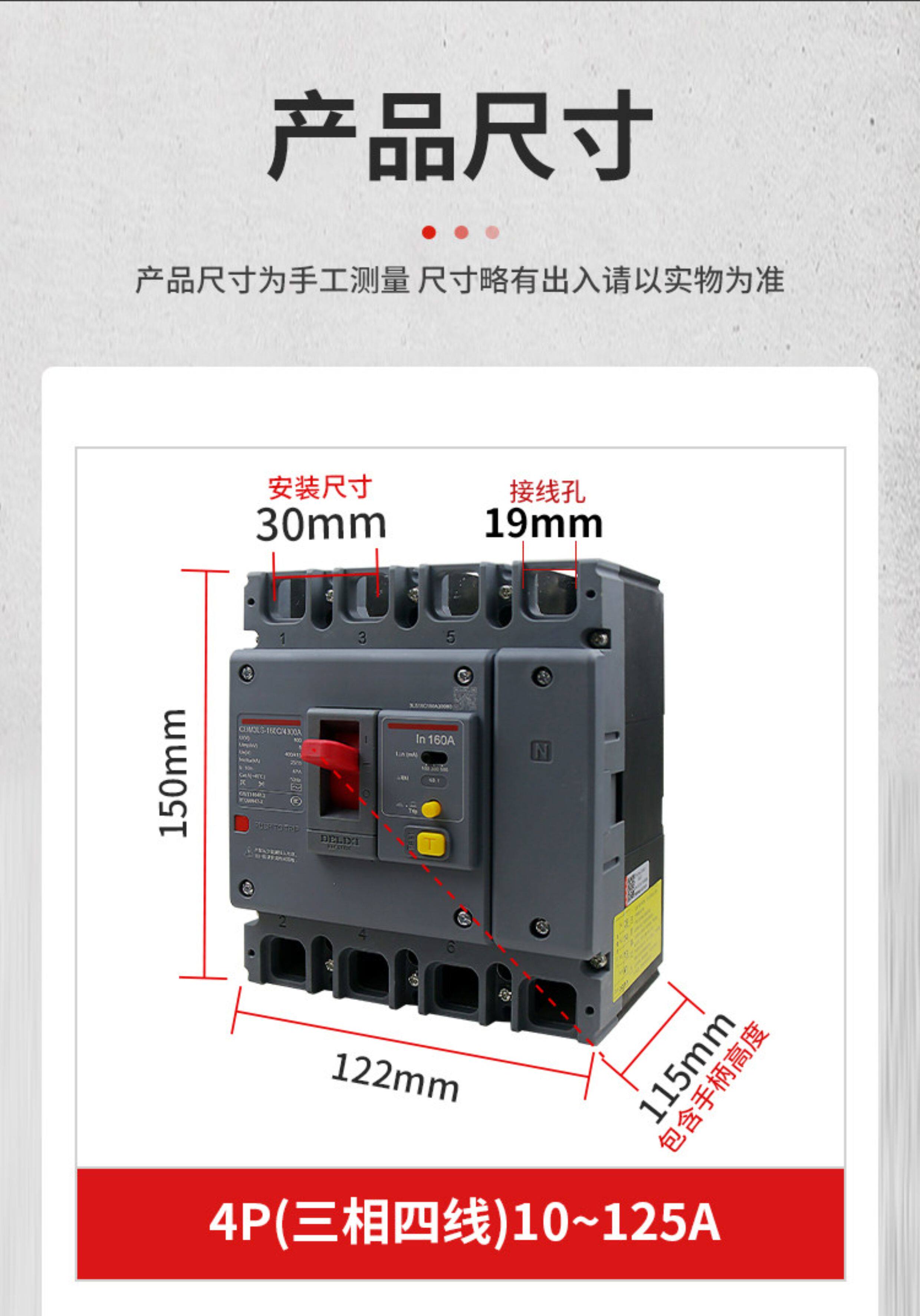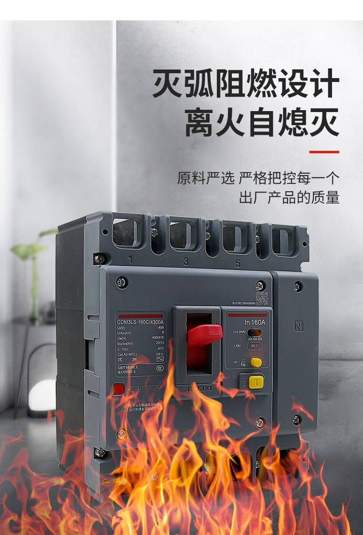 Delixi Three-Phase Four-Wire Circuit Breaker with Leakage Protection Plastic Case Cdm3Ls-3P4P A125A160A200A