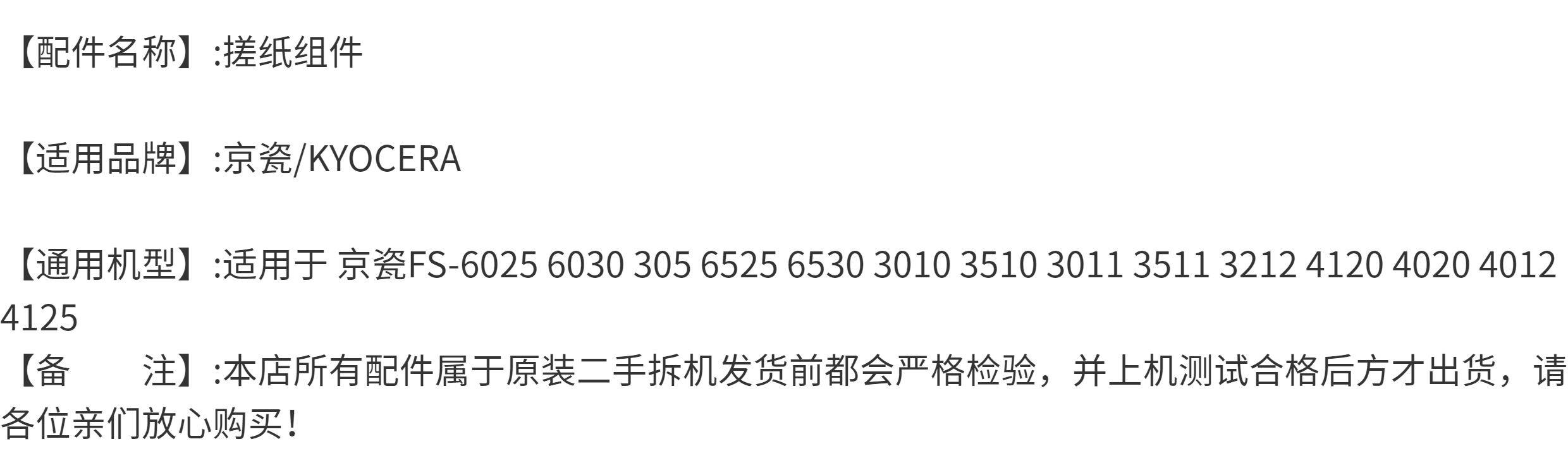 Kyocera 4012 3212 6525 3510I 3011 3212 4020 3511I Paper Tray Pickup Roller Assembly