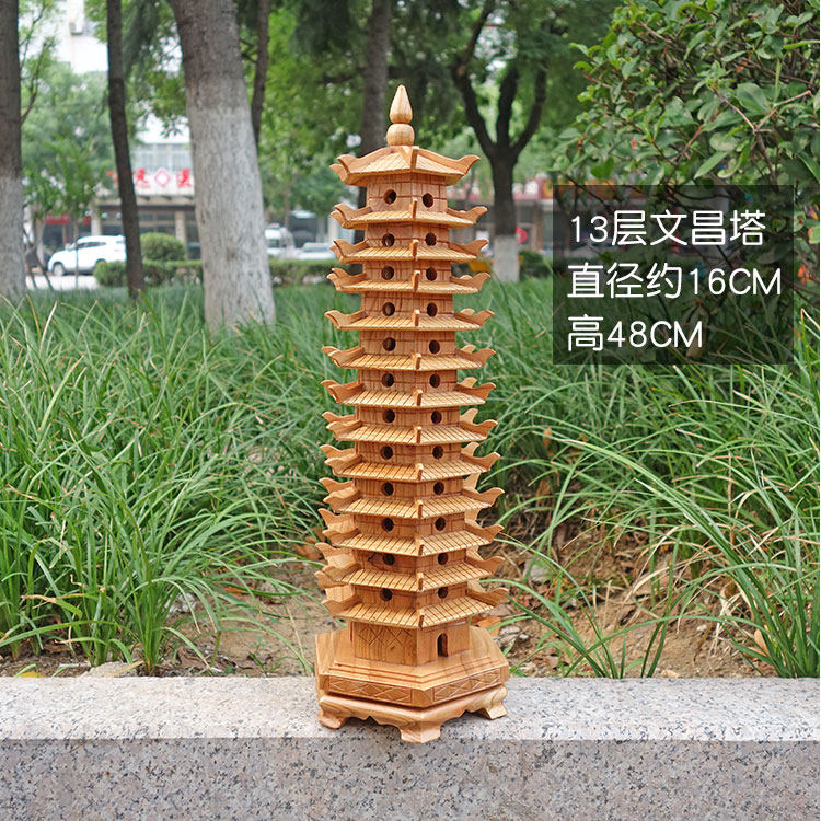 Authentic Peach Wood Wenchang Tower, 13-Layer Wooden Ornament for Study Room and Office Decoration