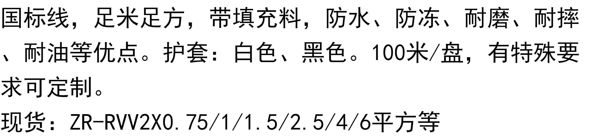 Color Classification Zr-Rvv2*0.75 Square 100m,Zr-Rvv3*0.75 Square 100m,Zr-Rvv4*0.75 Square 100m,Zr-Rvv5*0.75 Square 100m,Zr-Rvv6*0.75 Square 100m,Zr-Rvv7*0.75 Square 100m,Zr-Rvv8*0.75 Square 100m,Zr-Rvv10*0.75 Square 100m