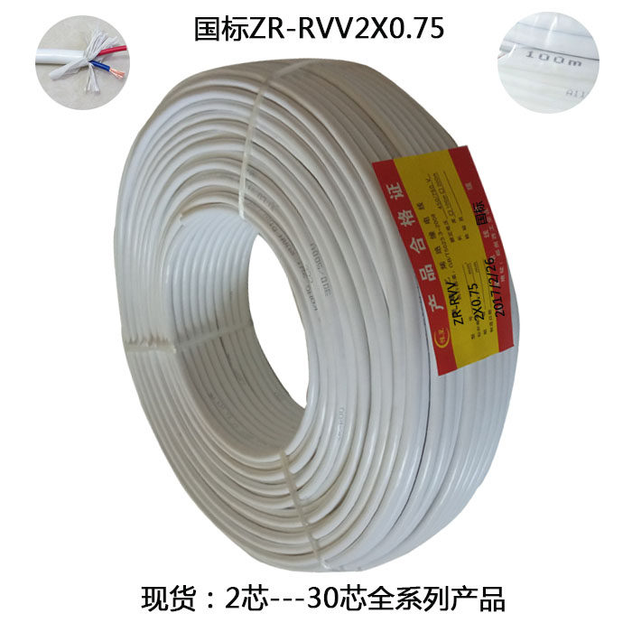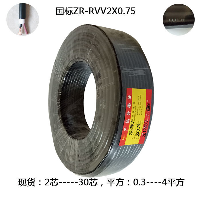 National Standard Wire Two-Core Rvv2X0.75 Monitoring Power Cord Soft Cable Waterproof and Anti-Scratch Sheathed Wire Engineering Outdoor