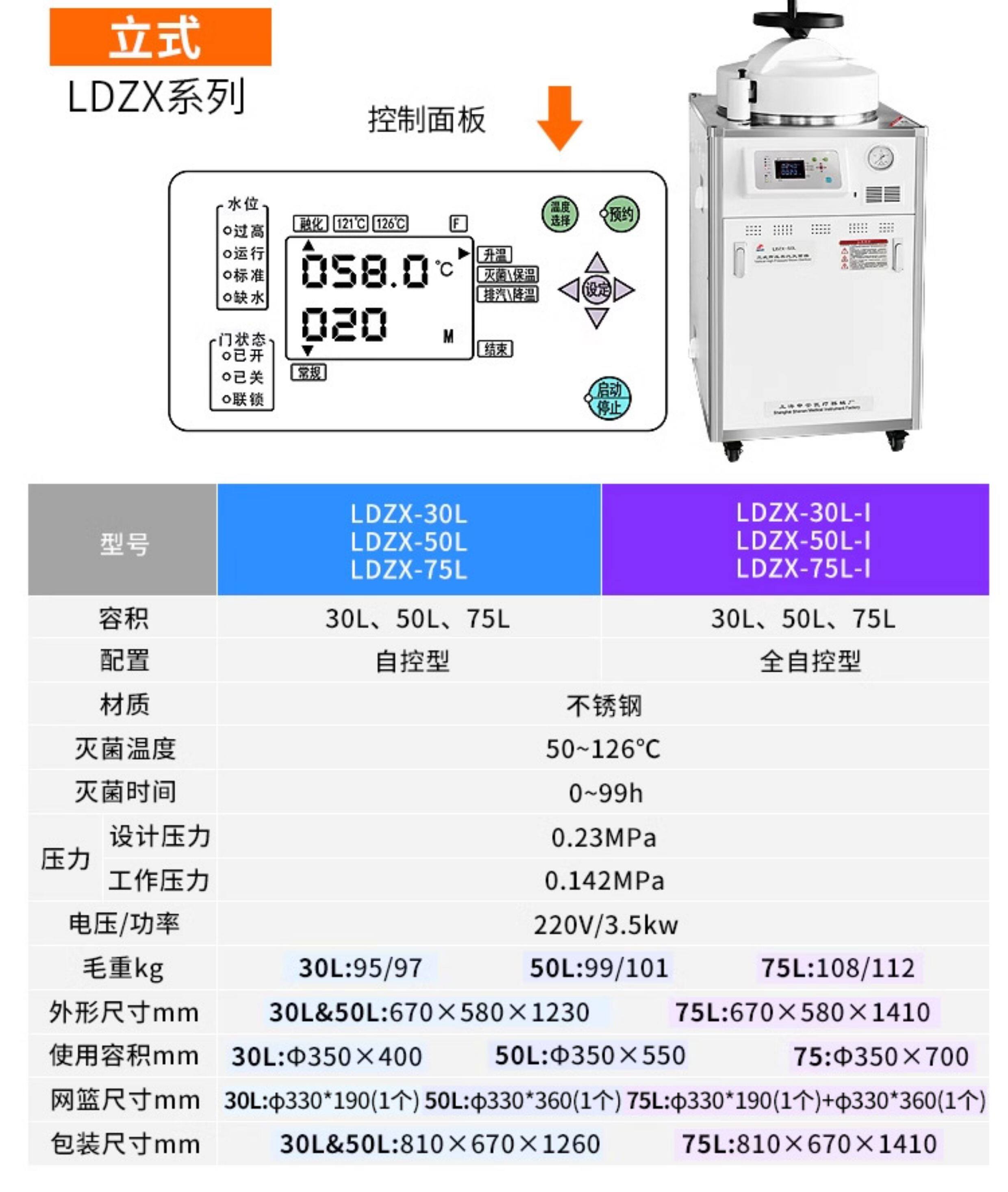 Shanghai Shen'An High-Pressure Sterilizer Ldzx-30L/50L Laboratory Sterilizer Vertical Pressure Steam Sterilizer