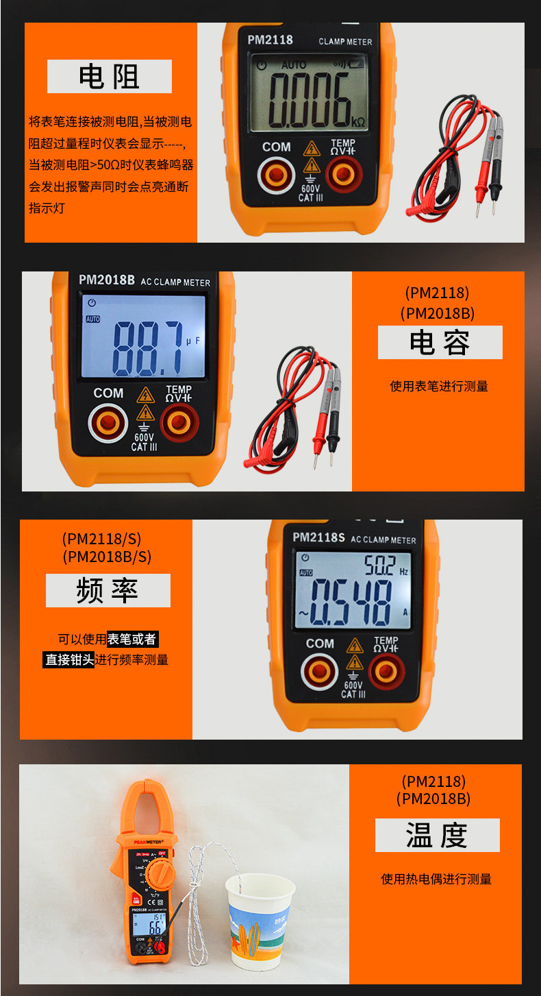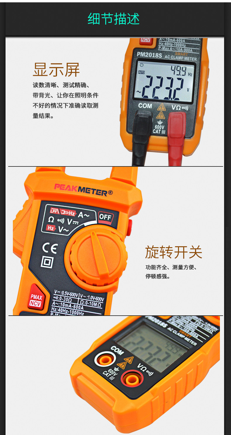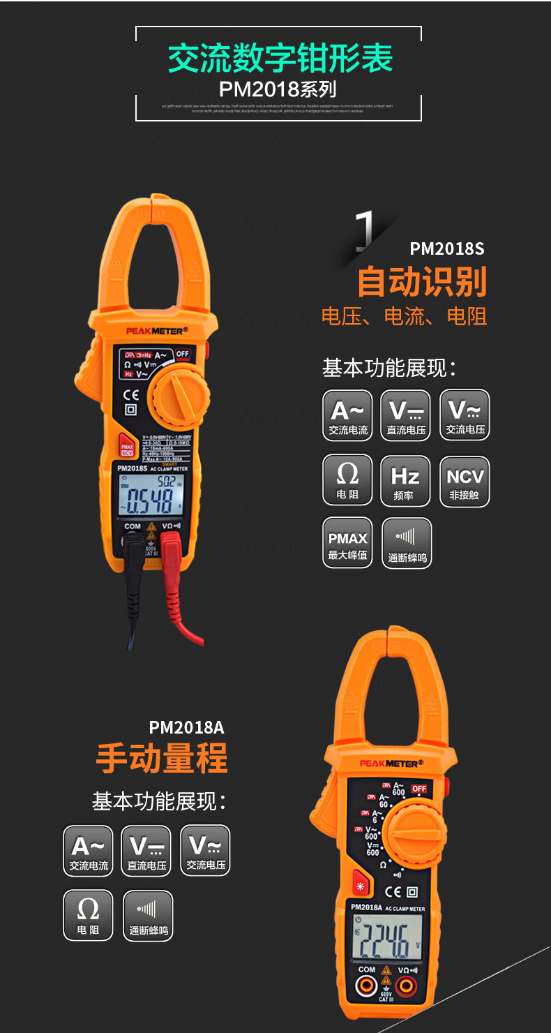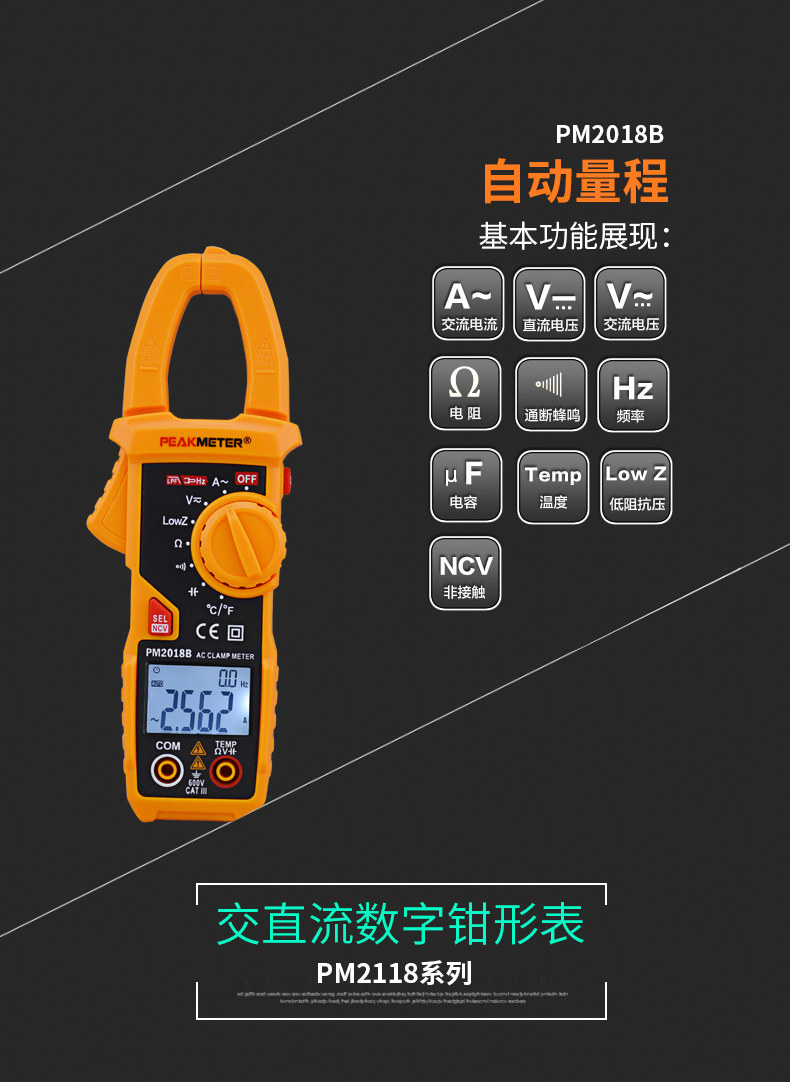 Peakmeter Huayi Pm2018S Smart Digital Clamp Meter Ac 600A Ammeter Pm2018A/B