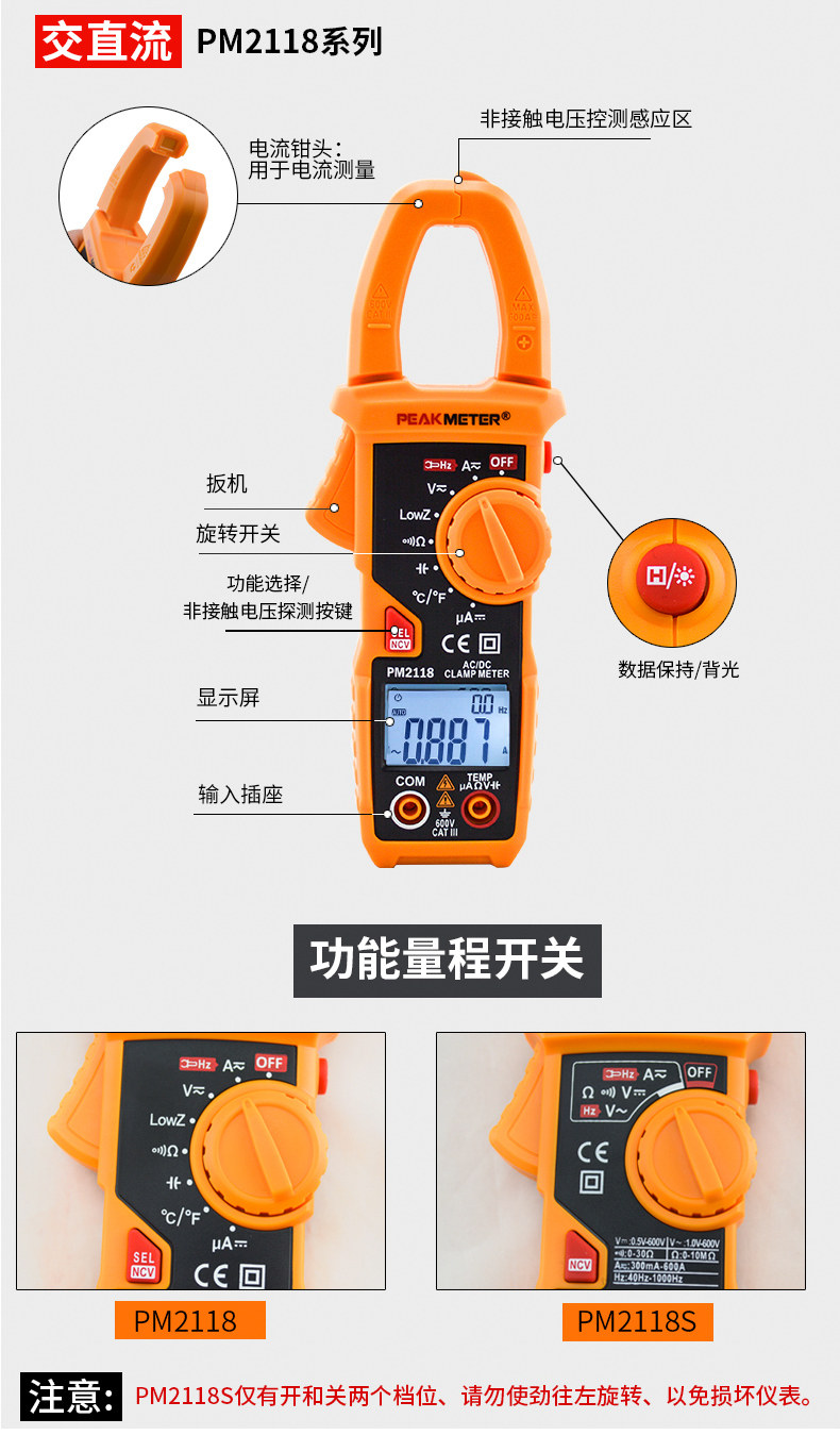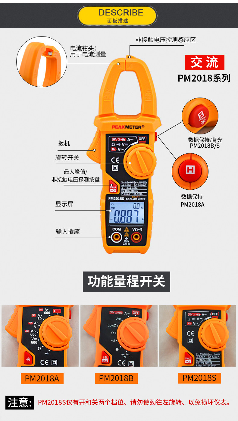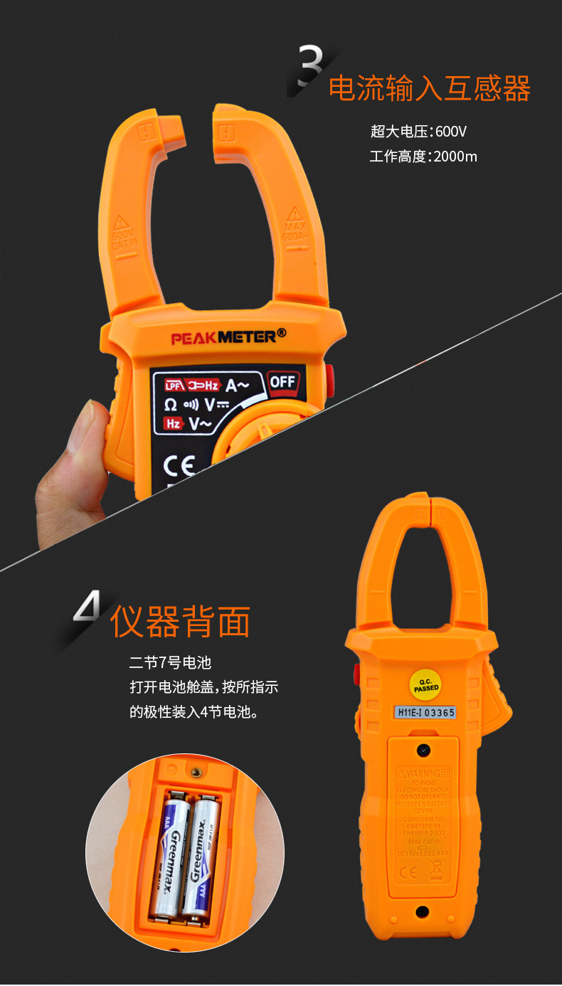 Peakmeter Huayi Pm2018S Smart Digital Clamp Meter Ac 600A Ammeter Pm2018A/B
