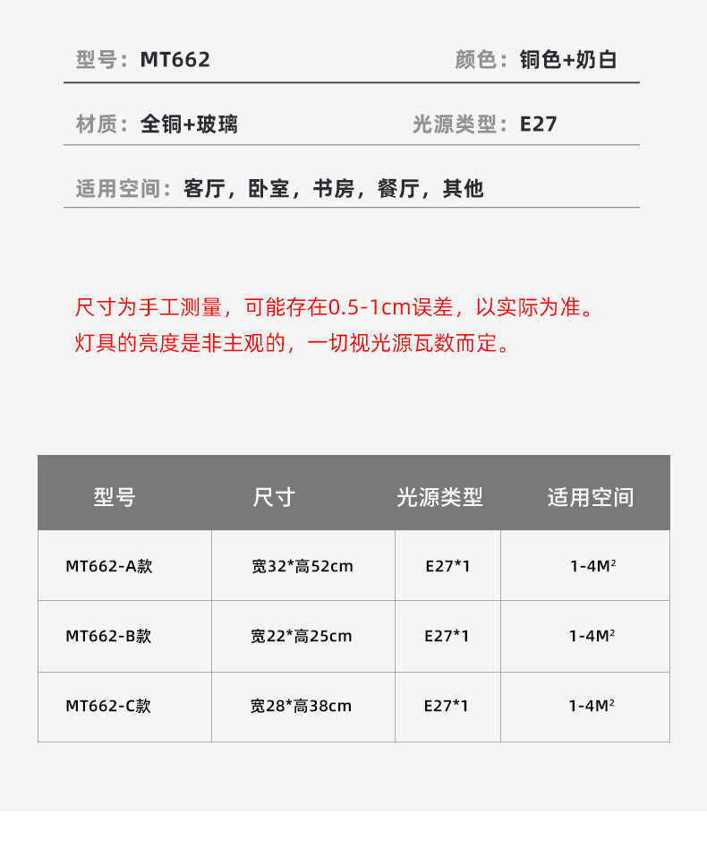 Color Classification All Copper Lamp Body - Diameter 25cm, Height 150cm (Floor Lamp),[Full Copper] Diameter 29cm High 22cm (Wall Lamp),All Copper-Height 22*Width 25cm Table Lamp,[Full Copper] Diameter 20cm High 57cm (Chandelier),All Copper-Height 30*Width 52cm Table Lamp,All Copper-Height 20*Width 38cm Table Lamp