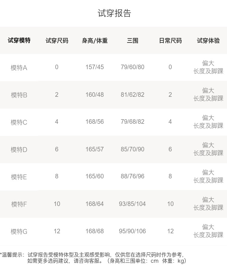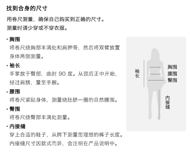 China (cm) 160-165/84-86 165-170 / 88-90 167-172 / 92-96 168-173 / 98-102 170-176 / 106-110